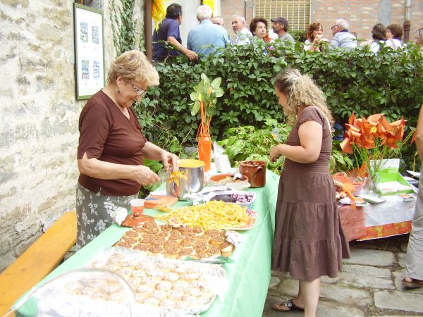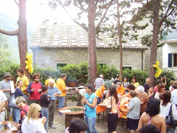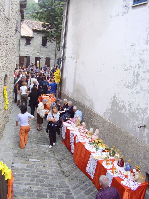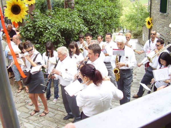 Il primo giorno di Settembre del 2007 si è svolta a Bocconi frazione del Comune di Portico e San Benedetto la festa della Bandiera arancione, riconoscimento del Touring Club Italiano per i comuni che offrono ospitalità di livello ai turisti italiani. Manifesto che pubblicizzava la manifestazione patrocinata dal Comune di Portico e San Benedetto, la manifestazione si è svolta con una gita nei magnifici castagneti di Valpiana, con un concerto di musica classica nella chiesa paesana di San Lorenzo e con la degustazione dei prodotti tipici della zona offerti da pubblici esercizi della zona e da semplici paesani. Il tutto allietato dalla musica della banda comunale e dalla presenza del giovane Sindaco Mirko Betti. Tutto il paese è stato avvolto da fiori e addobbi arancioni, molto suggestivo il colpo d'occhio offerto. Di seguito alcune foto della manifestazione: Le castagne prodotto tipico del Paese di Bocconi essendo nelle vicinanze dei castagneti di Valpiana e di Val di Stornara I funghi Porcini e di ogni altro tipo sono abbondanti nelle annate propizie quando madre natura ci offre il meglio di se stessa. La Banda Comunale che ha allietato la manifestazione con marce e musiche di ogni tipo. Il Sindaco Mirko Betti. Quest'evento mi ha stimolato per proporre a tutti i lettori di questi mini reportage alcune immagini sul paese di Bocconi e dei suoi dintorni. Luoghi sicuramente da visitare, magari in una bella giornata d'autunno, quando percorrendo strade e sentieri si potranno visitare i meravigliosi castagneti, con persone intente alla raccolta dei marroni e se si è un pò fortunati alzando gli occhi al cielo si osserveranno branchi di colombacci impegnati nella migrazione autunnale. A presto allora con Bocconi e dintorni. E chiaramente essendo un forum, che ho un pò trasformato in un blog, mi aspetto i Vs. commenti, magari dopo aver visitato la zona incuriositi dai miei racconti. |