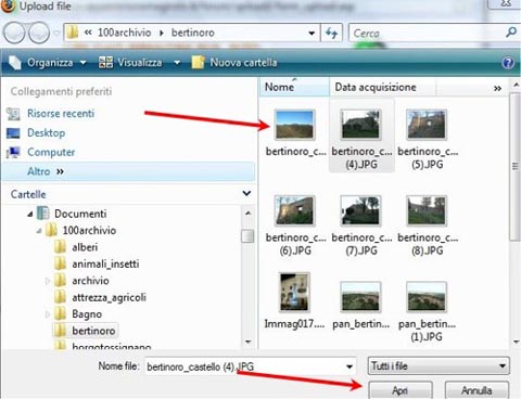 Viene così attivata la "pop" per il caricamento 2 - cliccare sull'icona con la macchina fotografica Si apre una seconda pop che ha il compito di trasferire l'immagina dal vostro computer al server di www.appenninoromagnolo.it Si apre il vostro "esplora risorse" permettendovi così di trovare la foto da