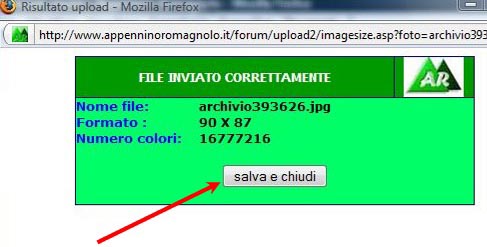 L'immagine ora è pronta per essere inviata al server 5 - cliccare su Invio Se l'immagine ha i requisiti richiesti 6 - cliccare su salva e chiudi In caso di errore, segnalato dalla Pop (di solito dimensione eccessiva), Ora l'immagine è stata trasferita sul serve, quindi può essere pubblicata. 7 - cliccare il pulsante Pubblica