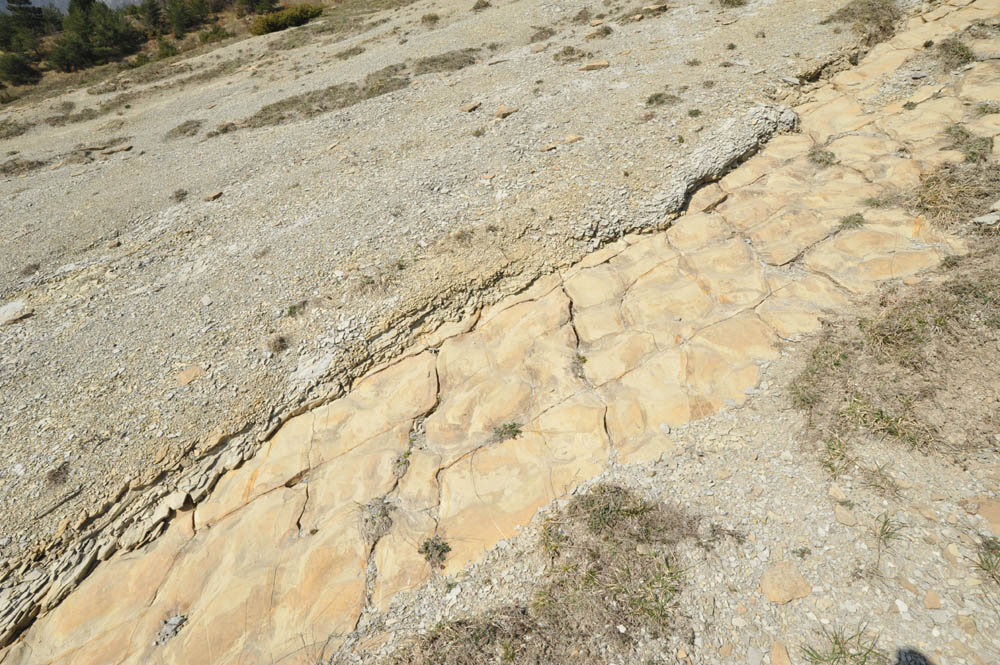 (014c) – Durante la salita si notano caratteristici affioramenti lapidei causati dal dilavamento delle marne (26/03/2012).