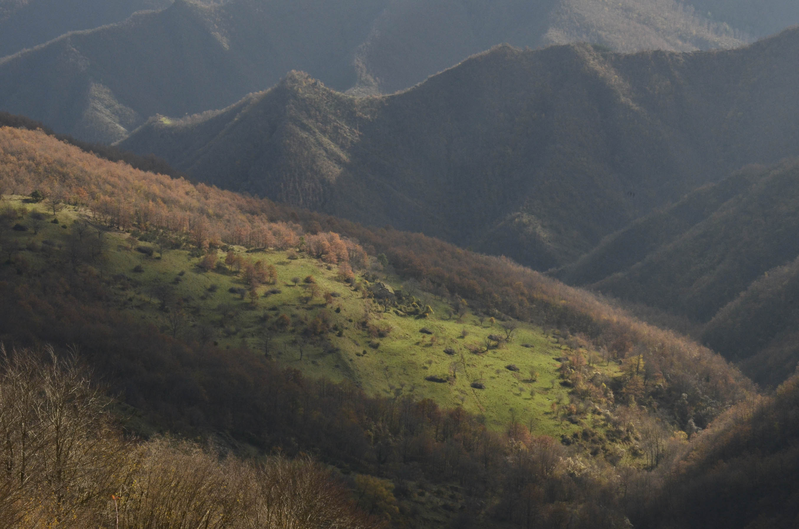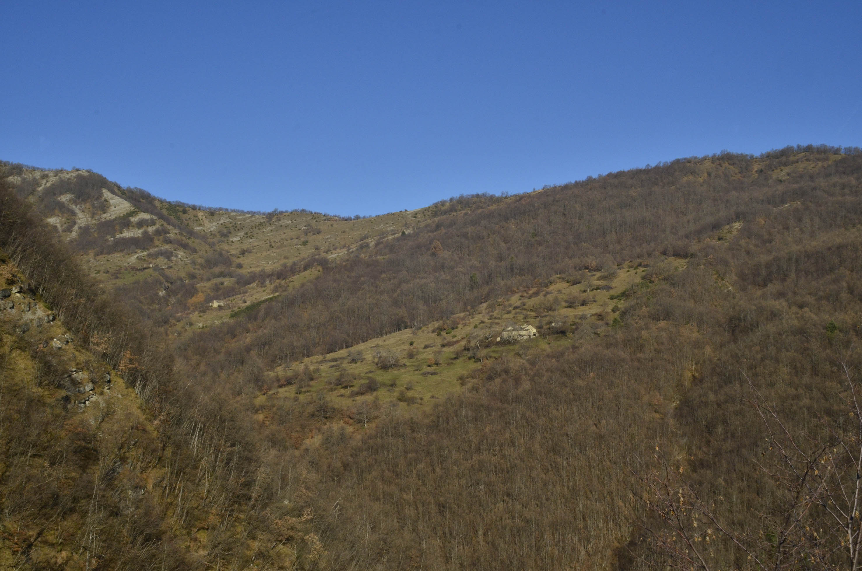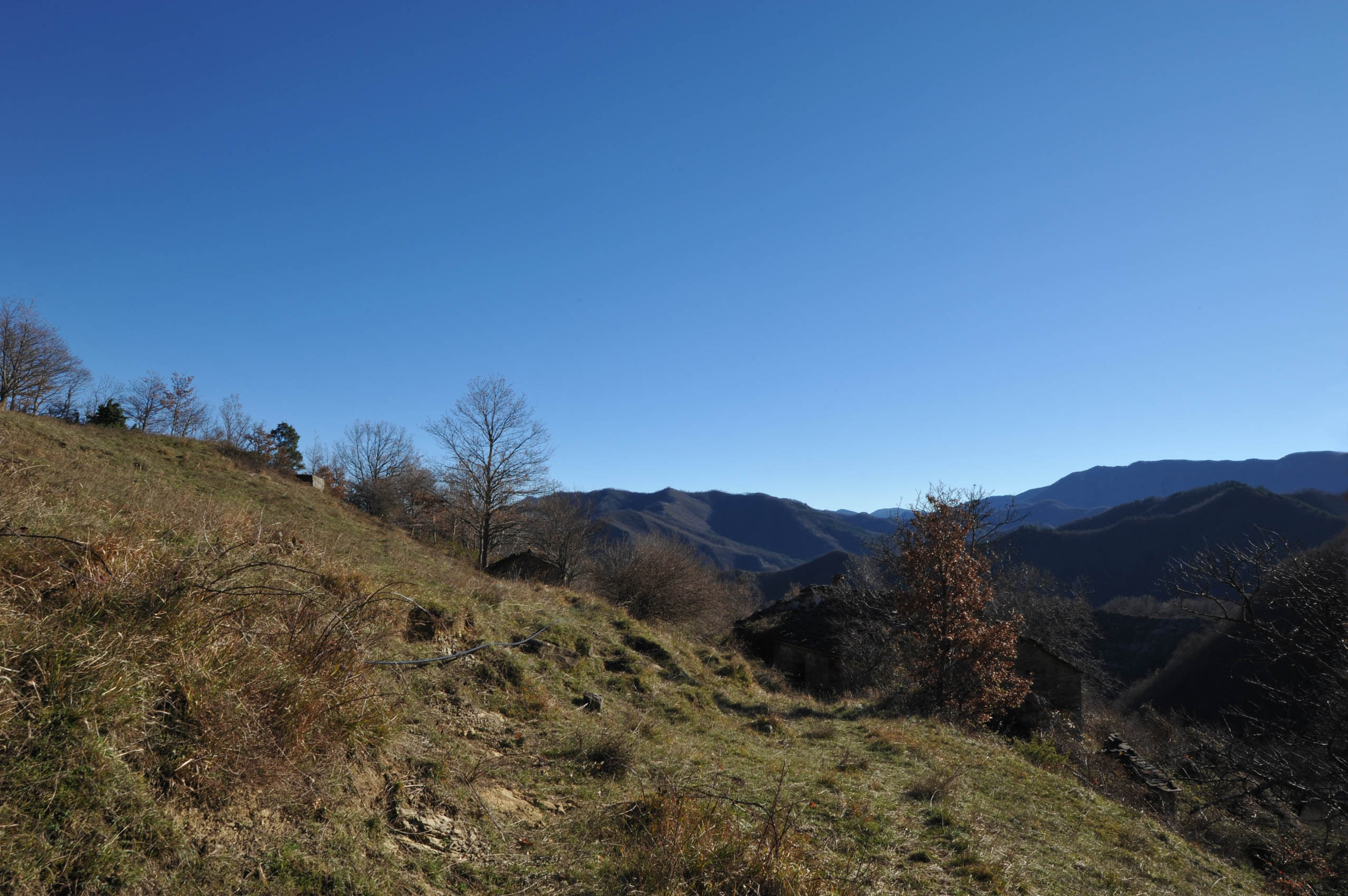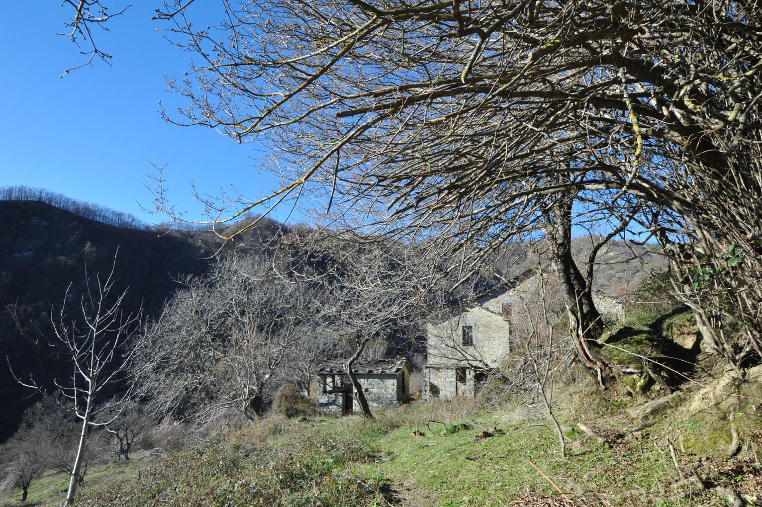 Testo di Bruno Roba - Dalla S.P. 4 del Bidente, giunti a Corniolo si devia sulla rotabile ripidissima ma ben tenuta che risale la Val Bonella raggiungendo il Passo della Braccina, sul contrafforte principale che divide le Valli di Corniolo e di Fiumicello. Dall’area di sosta, superata la sbarra si imbocca la ripida pista, riservata per uso agricolo e forestale, ripercorsa dal Sentiero degli Alpini 301 CAI che, dai 961 m del passo, dopo circa 1 km spiana intorno ai 1140 m che poi mantiene transitando dopo circa 300 m accanto alla vetta (lato S) del Monte dell’Avòrgnolo. Da qui procedendo verso il Monte Cavallo, la valle di Lavacchio compare quasi interamente nel suo sviluppo dall’alto della sua testata, così come nel procedere si scorgono i suoi insediamenti. Dopo per 700 m dal Monte dell’Avòrgnolo inizia la discesa nella valle su sentieri non segnati e dopo circa 150 si raggiunge Lavacchio di Sopra, evidente sotto il crinale. Proseguendo la discesa per circa 700 m in scarsità di tracce evidenti si raggiunge Lavacchio di Mezzo, da qui occorrono 4-500 m per giungere a Lavacchio di Sotto, a seconda della traccia seguita ed altri 500 m separano da Campo di Fuori. Si può risalire anche da Lago tramite la mulattiera non segnata Casina-Cà di Belletta-Capria di Sopra, corrispondente alla via antica, o la rotabile S.Giovanni-Cà d’Armati-Cà d’Orso-Cà di Belletta, in parte corrispondente alla via antica, raggiungendo i fabbricati in senso inverso. Da Cà di Belletta, circa km 1,0 o 1,4 da Lago a seconda dei due percorsi scelti, in 600 m si giunge al bivio di Capria di Sopra, ulteriori km 1,0 per Campo di Fuori, quindi i tre Fabbricati di Lavacchio secondo le distanze già indicate. Il ritorno è più agevole grazie alla costante discesa.