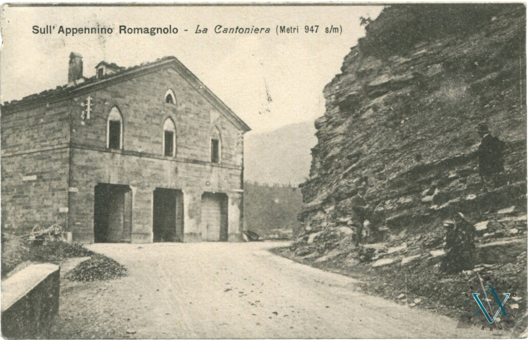 010 - Riproduzione di cartolina gentilmente concessa dall’Archivio Stefano Valbruzzi, composto da una vasta collezione fotografica e di cartoline di grande interesse storico/culturale ed ambientale, tra cui alcune riguardanti la Strada dei Mandrioli riprodotte in https://www.alpeappennina.it/rivista/la-strada-dei-mandrioli/, per cui si ringrazia Alpe Appennina e Monti editore per l’ulteriore consenso alla riproduzione. Dalla descrizione si evince che si tratta di una cartolina B/N, su cartoncino rigido, cm 14×9, autore Fot. Riservata I. Rossi, nr° 61905 296, soggetto: Casa cantoniera degli “Scalacci”, viaggiata nel 1912. Viene qui riprodotta in quanto utilizza una rara foto d’epoca che dimostra come l’edificio sia giunto sino ad oggi pressoché inalterato; peraltro, nonostante la fatiscenza lo stesso sarebbe ancora consolidabile almeno nelle strutture principali, quale testimonianza culturale dell’epoca.