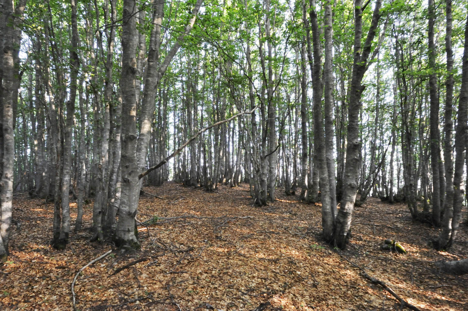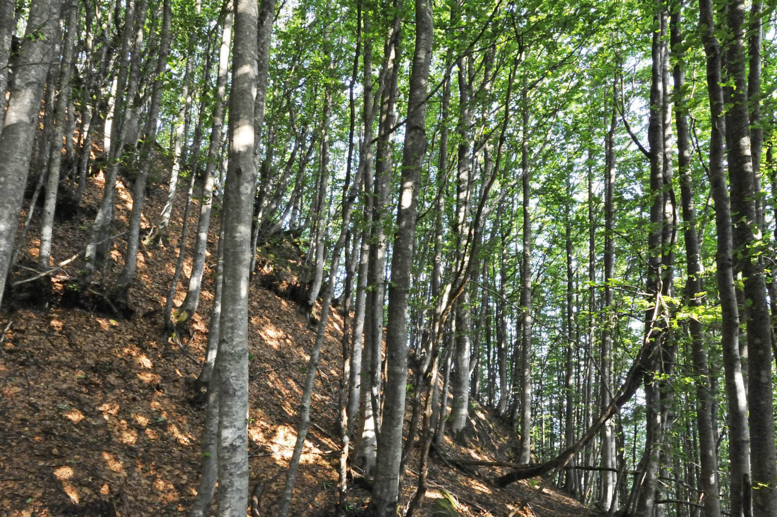 002e – 002f – Dalla S.F. di Giogo di Castagno tagliata sotto Pian delle Fontanelle, scorci tra la vegetazione consentono viste ravvicinate del profilo di Poggio Martino (27/09/11 – 16/04/16).