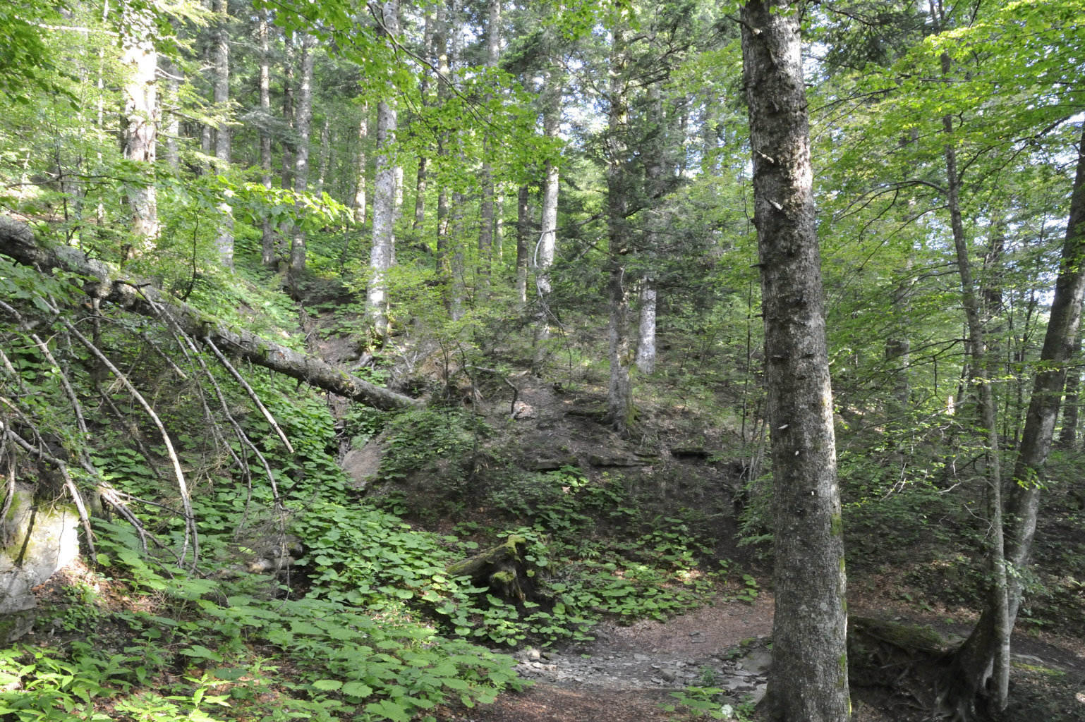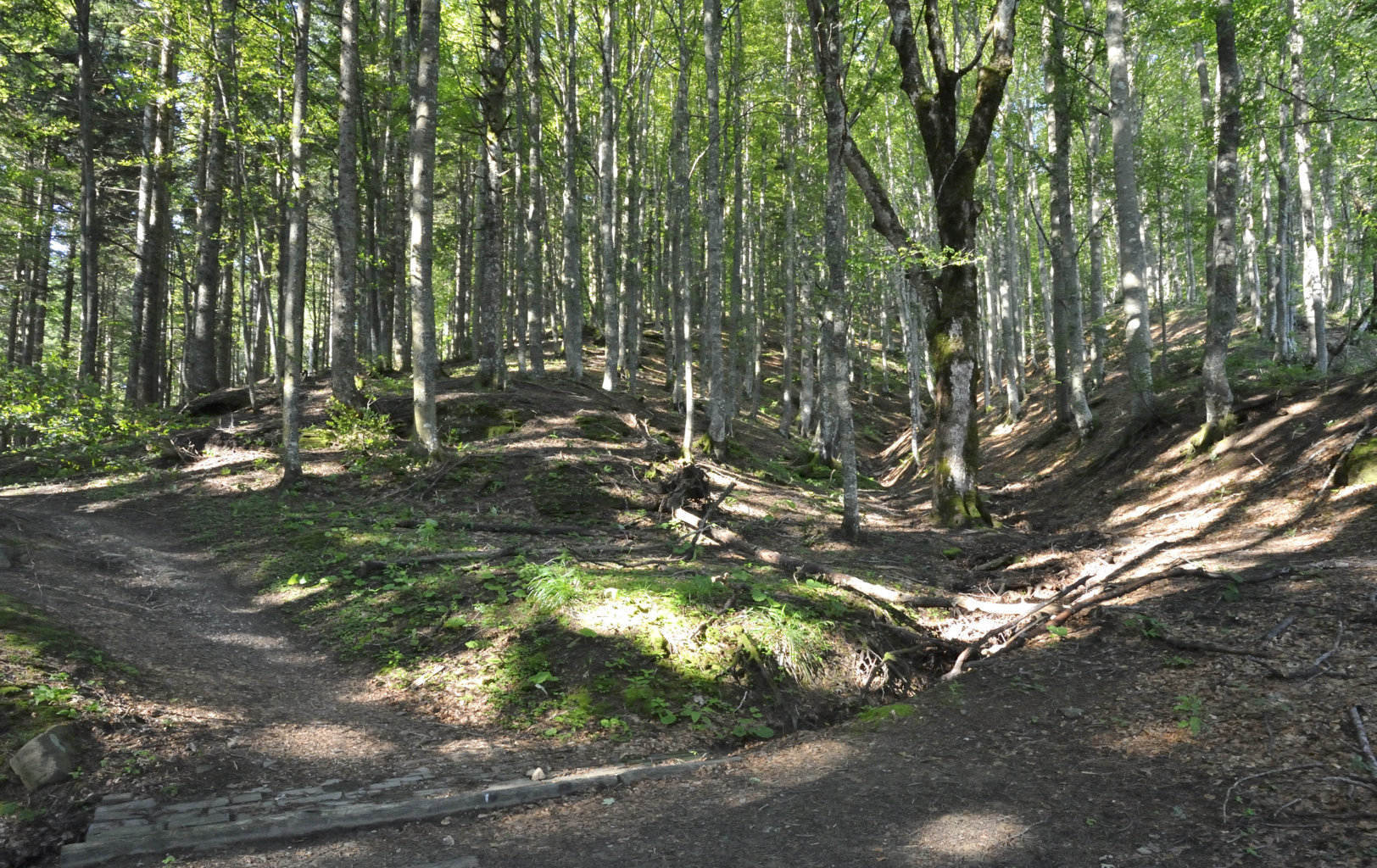 004p – 004q – Il sito un tempo noto come La Stretta corrisponde a una sella che in un ridotto spazio viene attraversata dal primo impluvio di un ramo del Fosso dell’Abetia mentre in adiacenza precipita il Fosso delle Capanne, diretti in bacini diversi ma entrambi nascenti dal poggio (27/06/18).