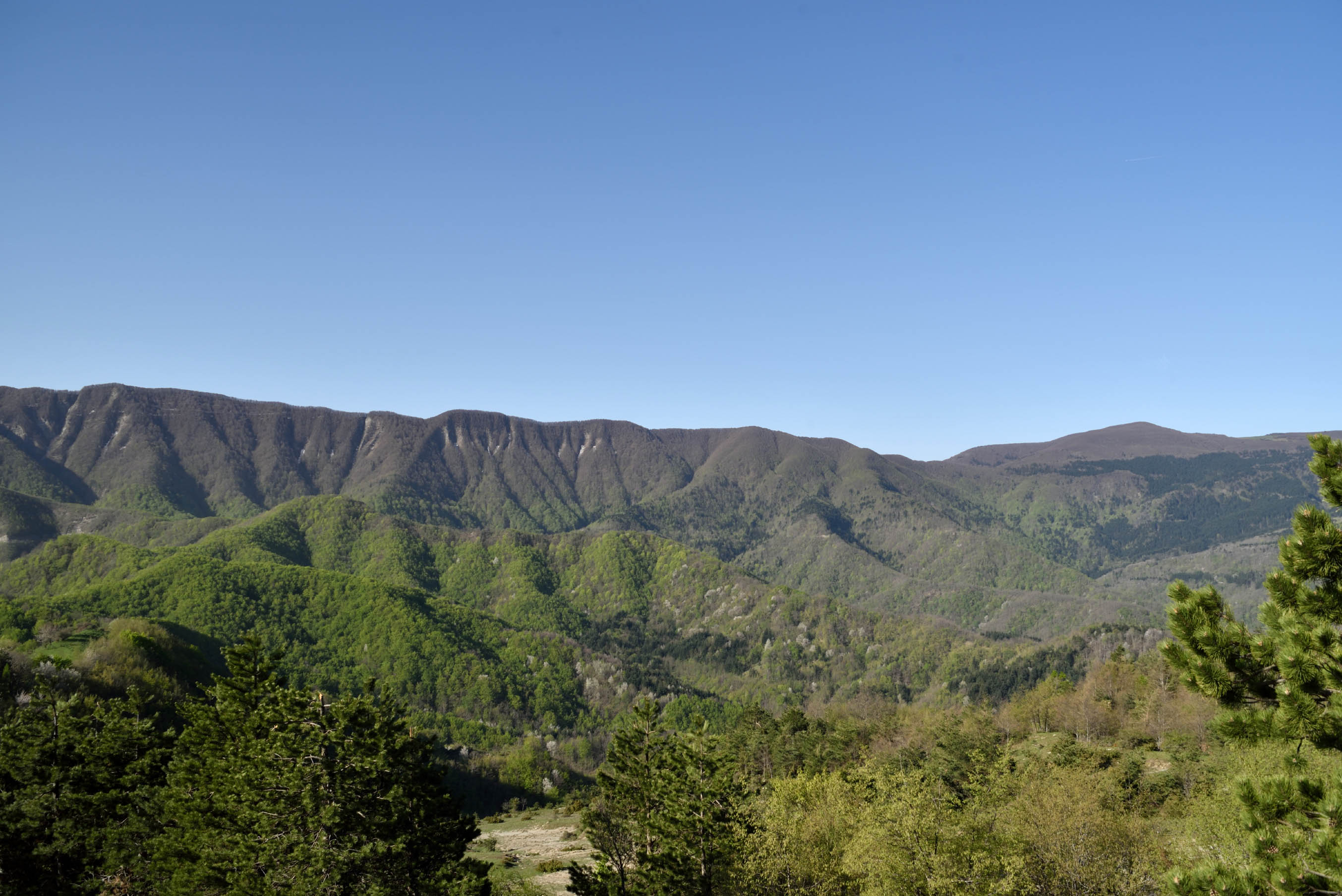 001o/001r - Prima da monte di S. Paolo in Alpe poi dal crinale che delimita la valle del Fosso di Ristèfani, si nota lo sviluppo dallo spartiacque appenninico delle Coste di P.gio Termini, di P.gio del Ballatoio e delle Cullacce, in parte occultato dalla dorsale Poggio Capannina-Poggio Ricopri-Poggio di Montali; in alcune viste è evidente il lungo “ballatoio” quasi orizzontale della costa centrale (25/04/18).