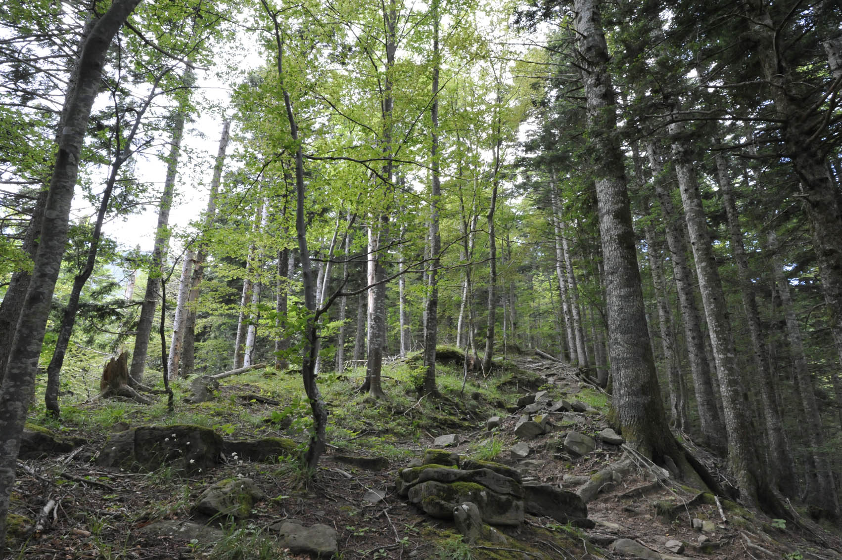 003l/003u– Il sentiero 241 CAI percorre i versanti della Costa Poggio del Ballatoio, intersecandone il crinale alla quota 1088, fino alla delimitazione del Fosso della Ruota nel punto in cui i suoi due rami si riuniscono alla quota 1204 (19/06/18).