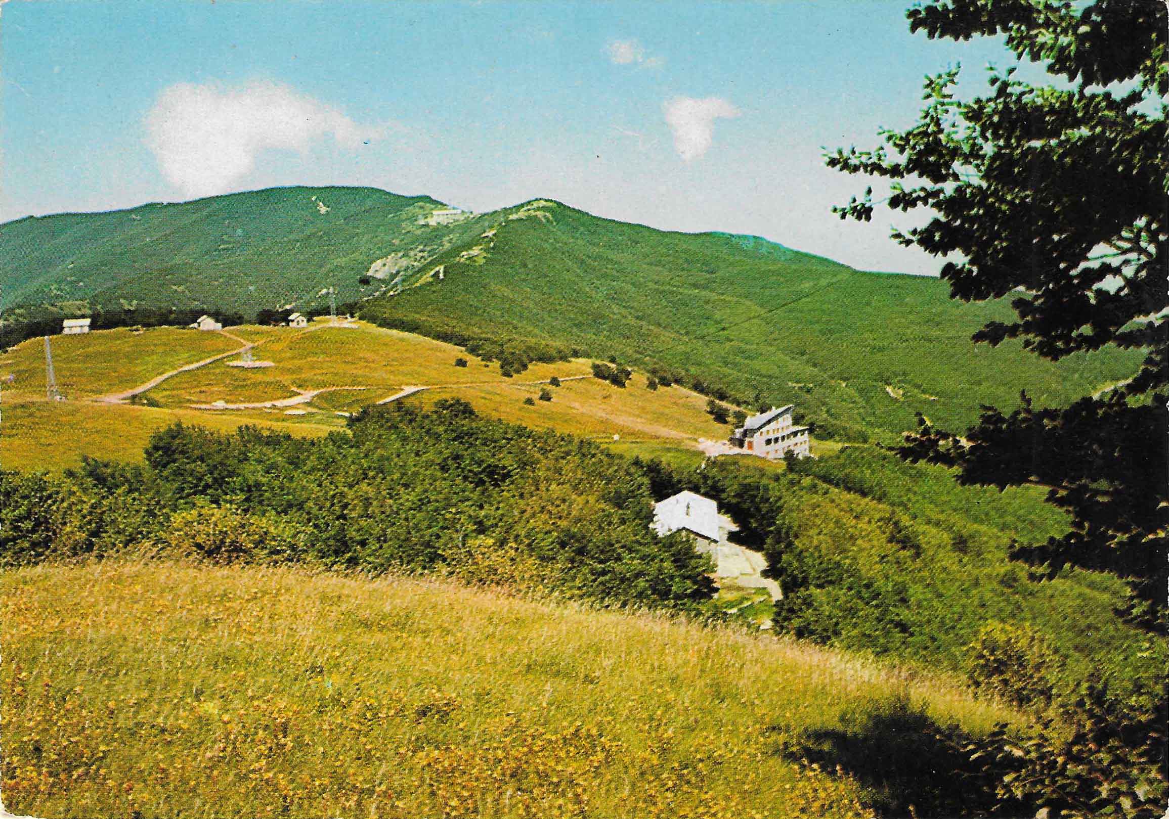 037 – Cartolina Cartolux a colori serie n. 1052, sul retro didascalia PRATI DELLA BURRAIA, non viaggiata, databile intorno al 1974 per via del Rifugio Città di Forlì ormai costruito ma apparentemente non ultimato (risale a tale data), mentre ancora si notano i vari capanni (collezione personale).
