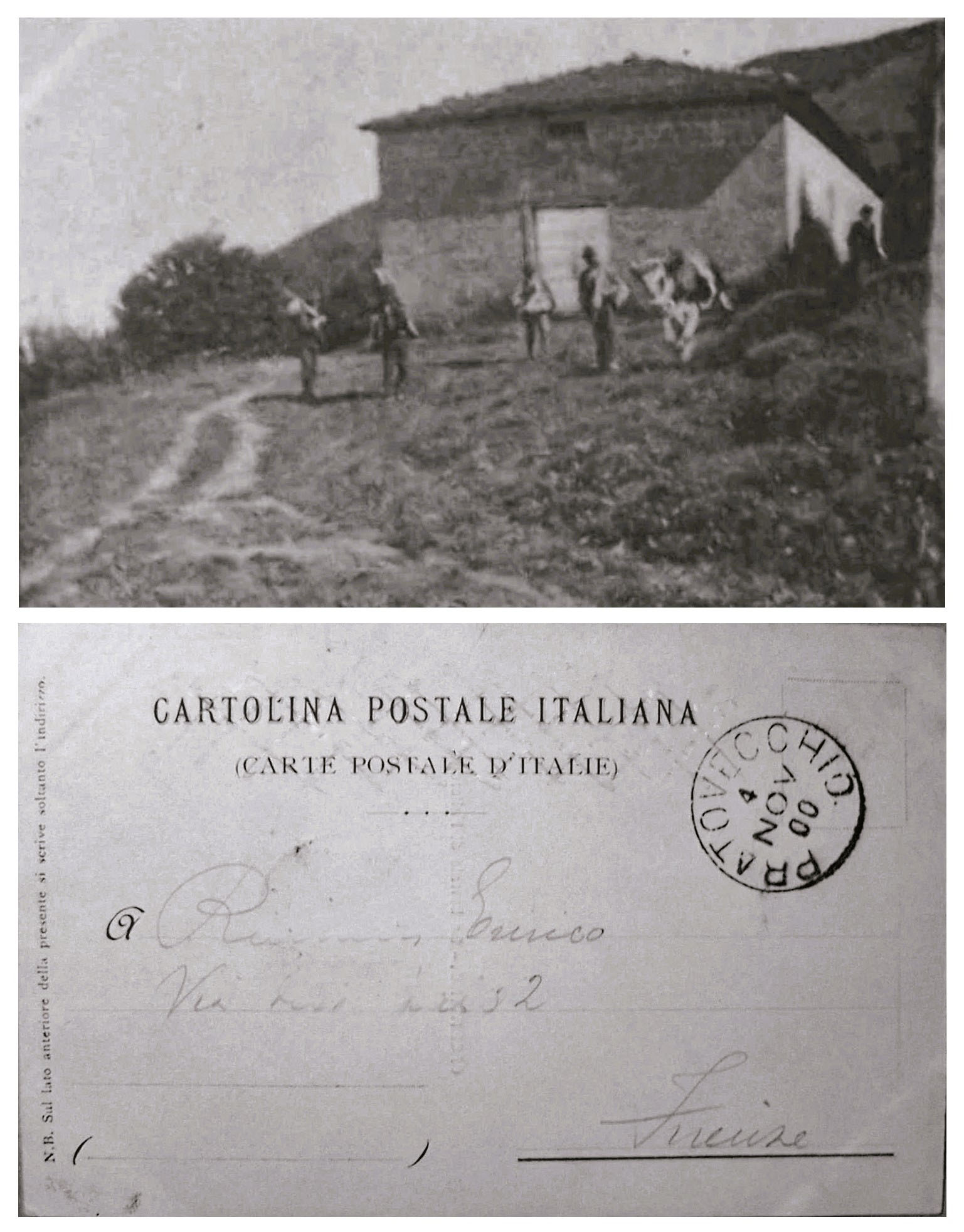 027 – Cartolina Postale spedita nel 1900 riguardante forse la più antica veduta della Burraia, con mandriani (collezione personale).