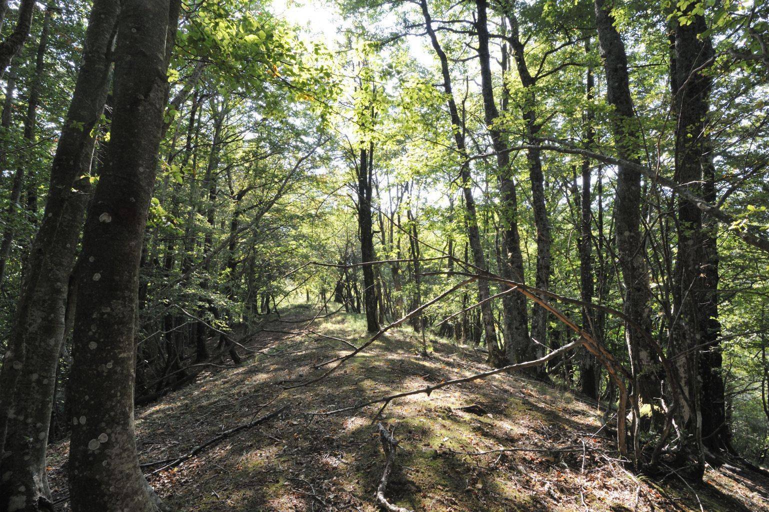 00l1/00l12 – La dorsale dei Segoni, specie nel tratto di fondovalle, conserva ancora evidenti tracce della viabilità di crinale che la percorreva e che si innestava sull’antica via che collegava l’Eremo Nuovo con la valle del Savio tramite Prato ai Grilli, ancora rappresentata nel catasto moderno come S. Vic.le Eremo-Campo Rosso (16/09/20).