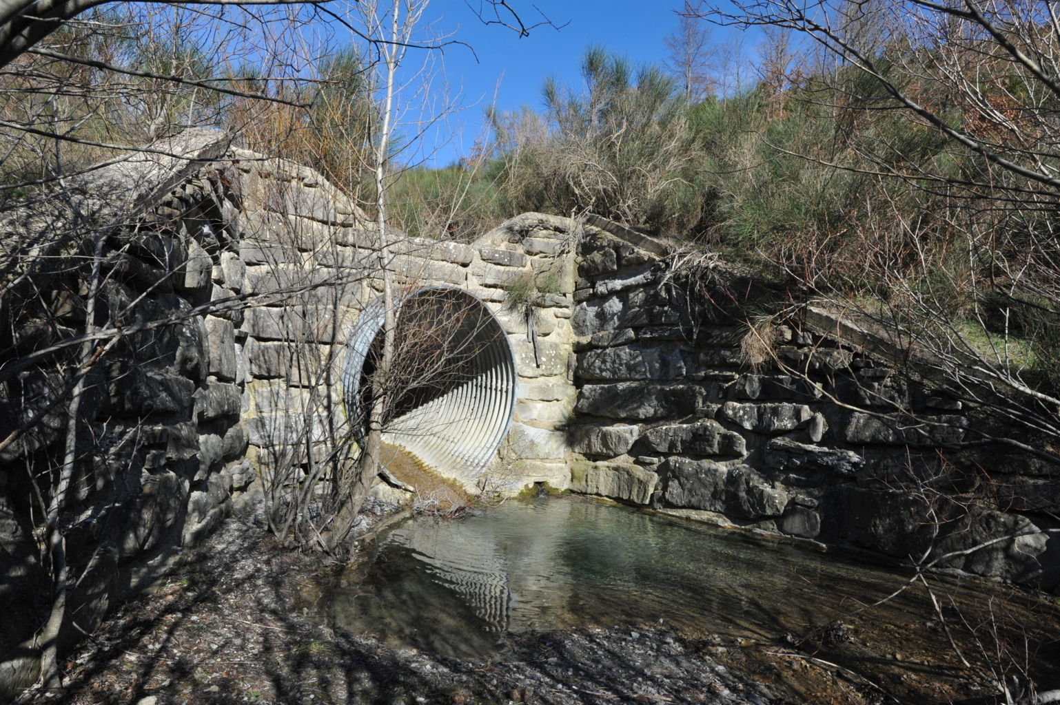 Testo di Bruno Roba - Dalla S.P. 4 del Bidente, giunti a Lago, al km 36+200 della S.P. 4 del Bidente, a 15 km da S. Sofia e a 9 km da Campigna, prima del ponte si imbocca la rotabile che risale il Bidente delle Celle, dopo circa 500 m, appena scavalcato il Fosso della Fontaccia (v. guard-rail), resti di recinzione con passo aperto o apribile consente di risalire nel podere abbandonato e raggiungere il sito del ponte, ora occupato da un tombamento del fosso con tubone corrugato metallico e briglia di sfioramento.
