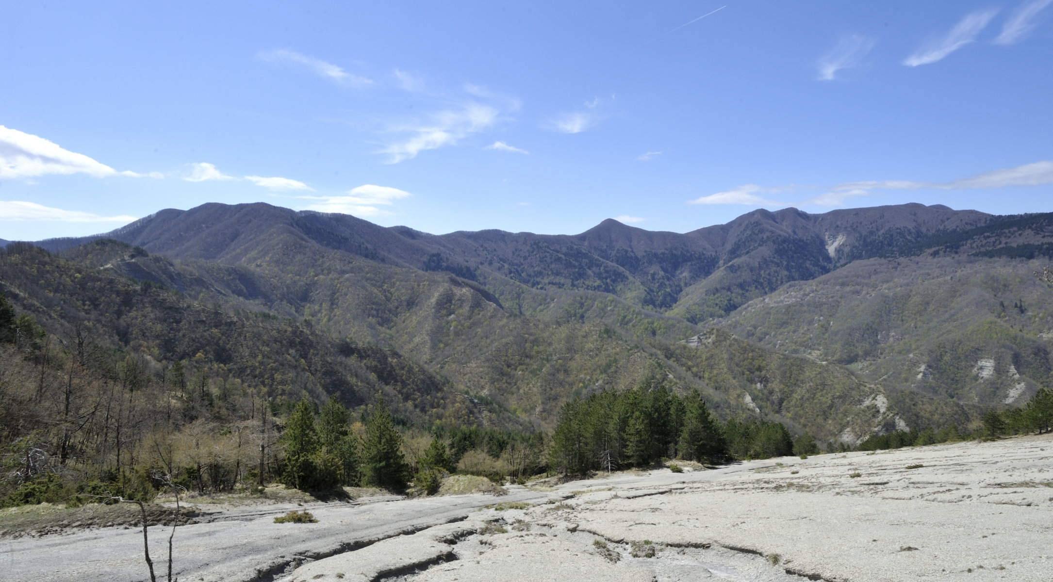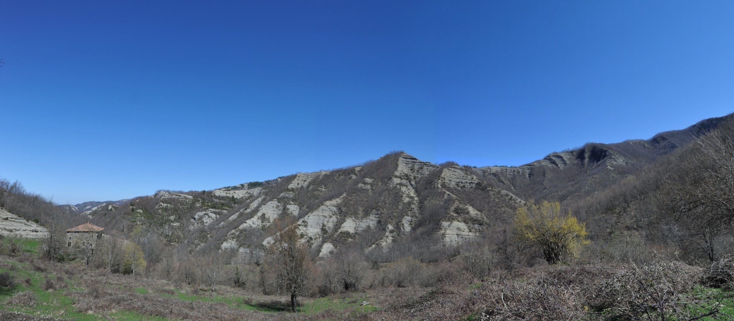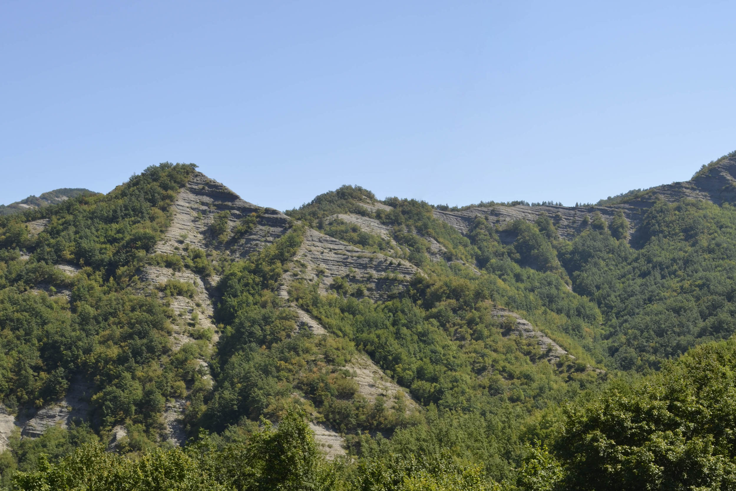 Probabilmente all’interno di uno dei primordiali avvallamenti sopra descritti potrebbe essersi originato l’assetto orografico dell’Appennino tosco-romagnolo e quindi attinente all’Alta Valle del Fiume Bidente, quale parte del sistema montano accennato da Mini nella citazione sopra riportata, laddove la catena appenninica presenta evidenti inflessioni alle quali si accompagna un vario orientamento delle diramazioni montuose che si staccano ad oriente dividendo i sistemi vallivi, con una regolarità morfologica che conferma quanto siano geologicamente recenti, a differenza dei territori circostanti, specie toscani, dove le catene montane sono disposte nelle più varie direzioni con datazioni di rocce che possono risalire fino a 300 milioni di anni BP, ricadendo pertanto nel Paleozoico.
