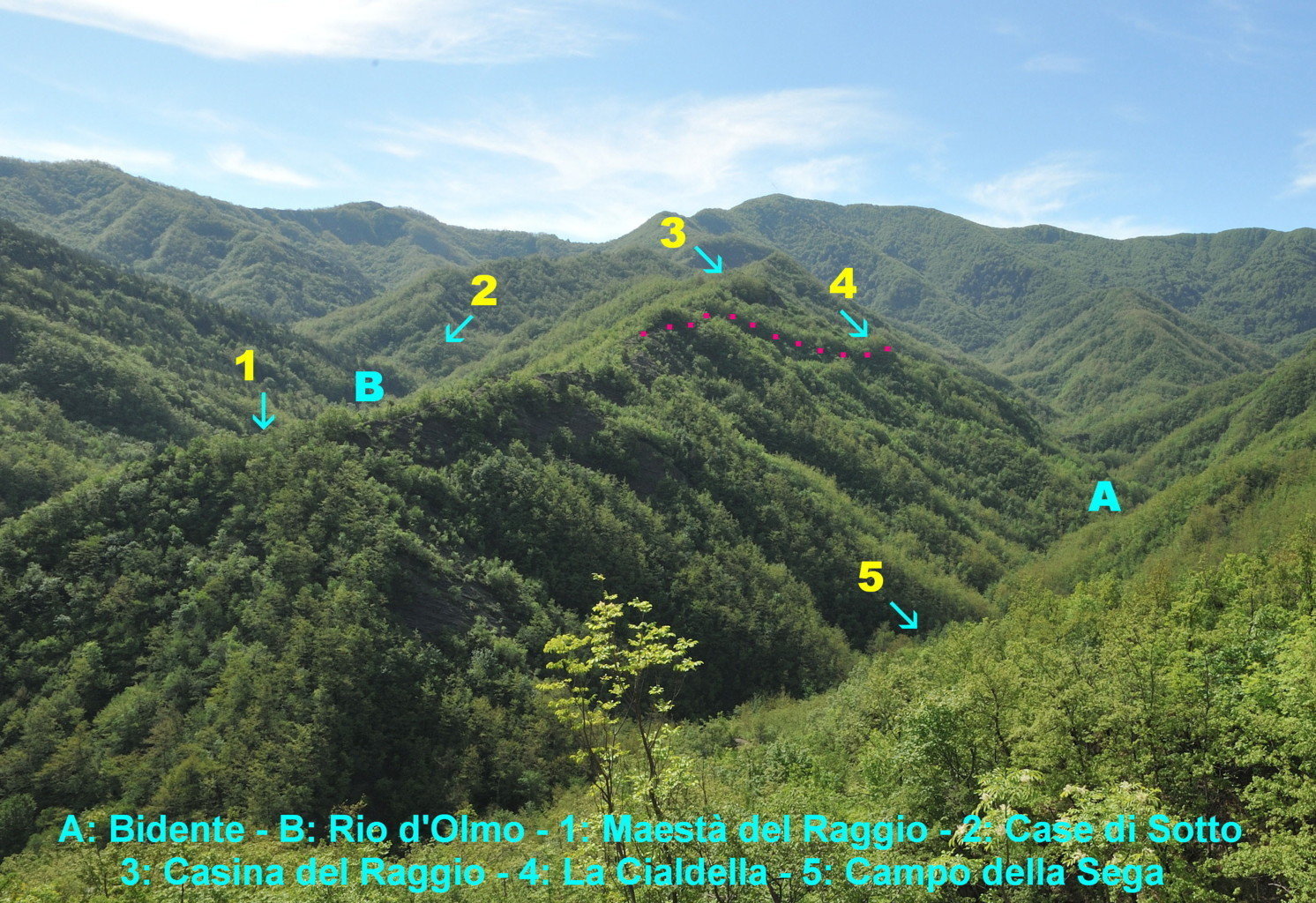 00d1 – 00d2 – 00d3 – Dal sent. 221, tra Pietrapazza e Siepe dell’Orso, vedute del Raggio del Finocchio, con indice fotografico (9/05/13).