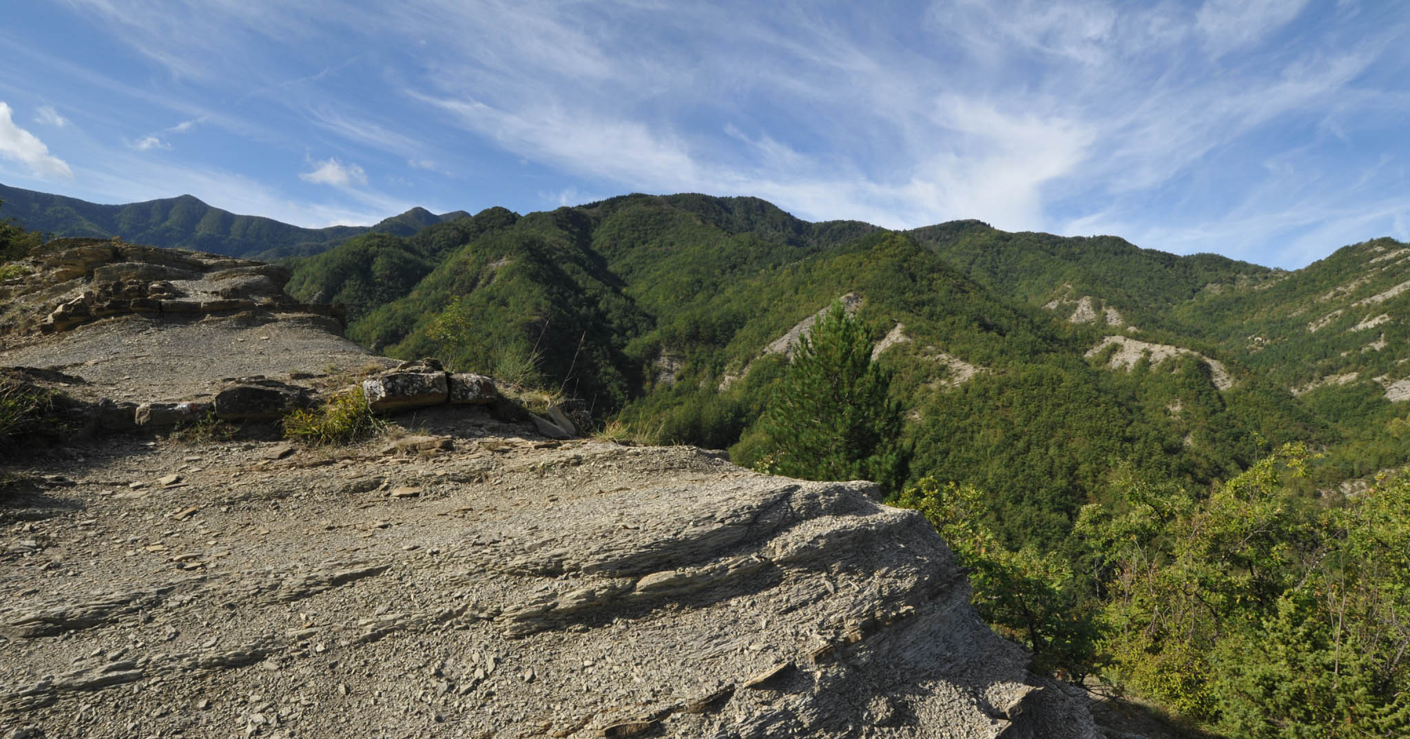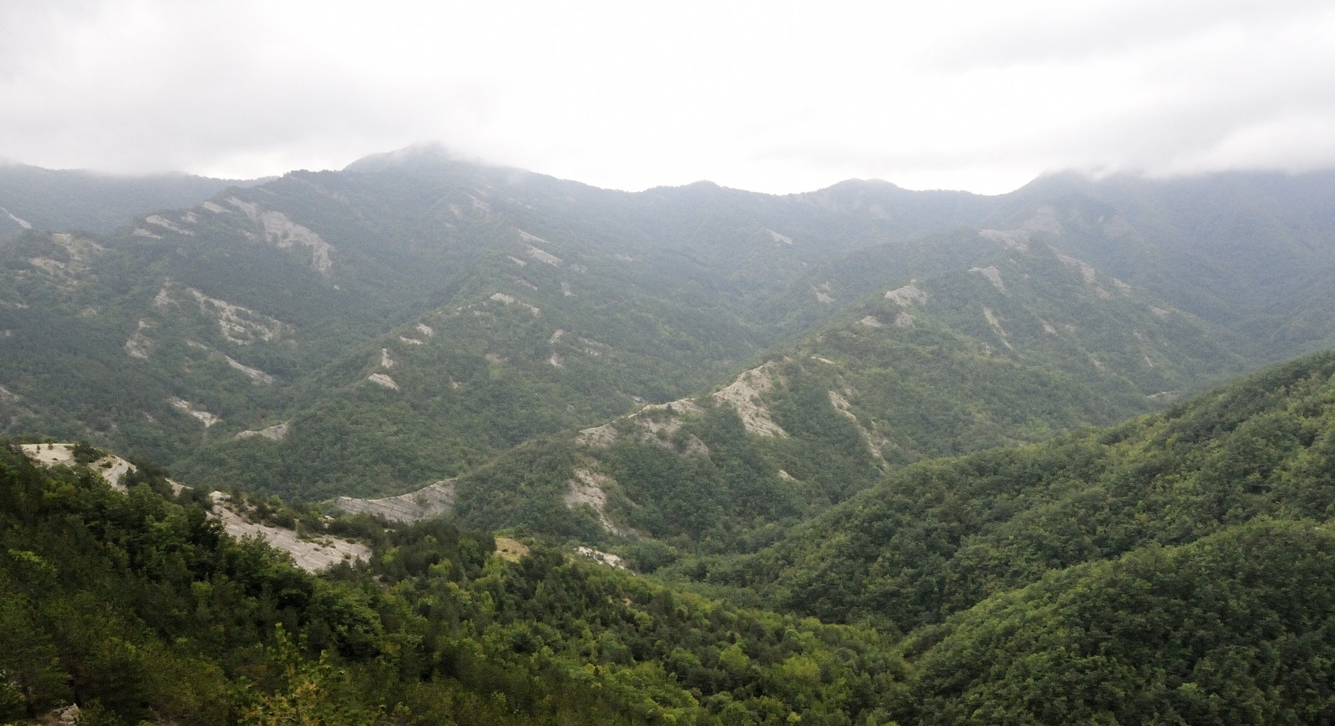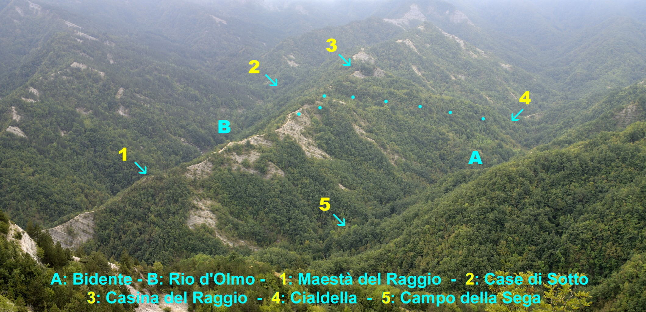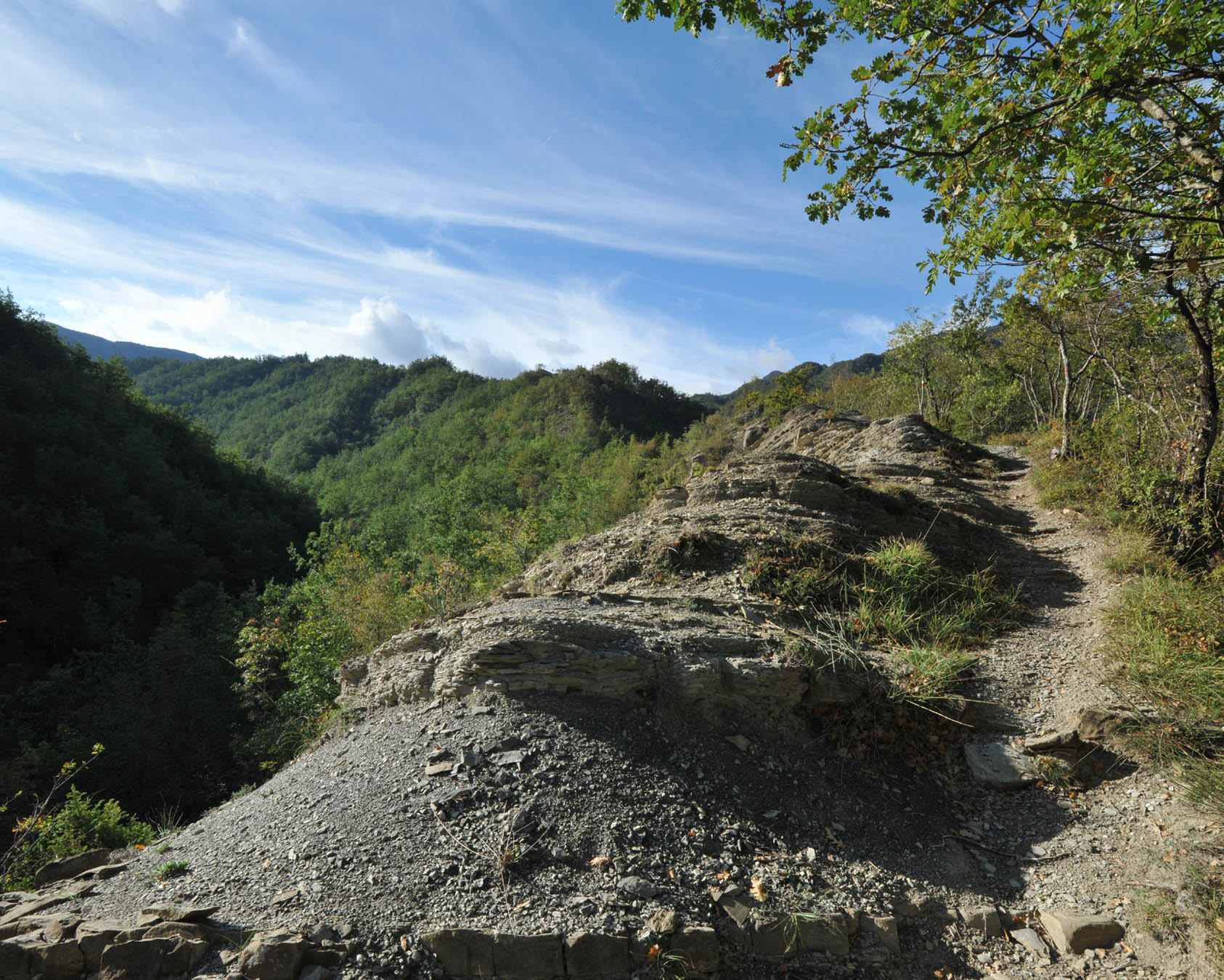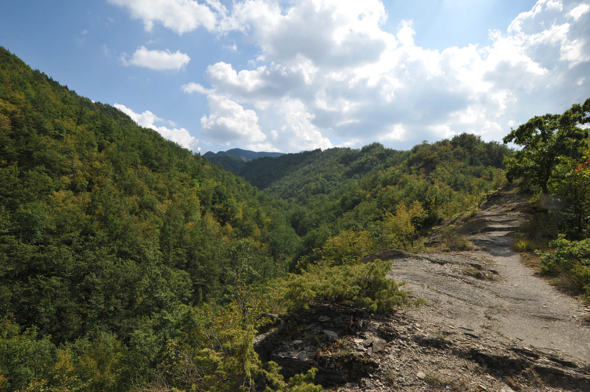 00b1 - 00b2 - 00b3 – Dal sent. 205, che dalla S.F. del Cancellino scende alla Bertesca, scorcio sull’alta valle del Bidente di Pietrapazza e l’inizio del contrafforte principale che si stacca da Cima del Termine con particolare delle Rivolte di Bagno che compiono l’ulteriore svolta delle Palestre dove inizia il Raggio del Finocchio (24/08/11 - 16/07/12).