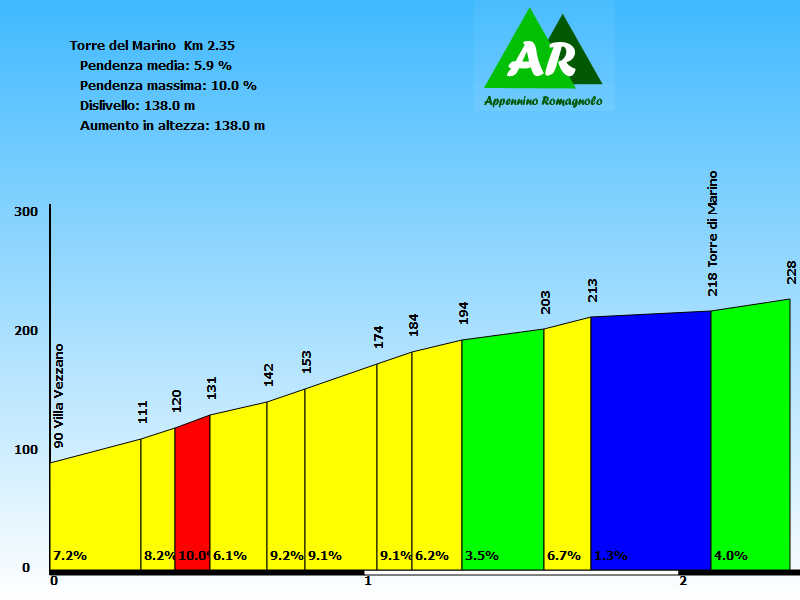 Poche centinaia di metri e siamo alla piccola frazione, superata la parrocchiale, fare attenzione ad una deviazione sulla destra via 'Torre del Marino'.