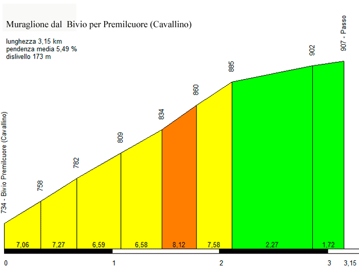 I primi 18 chilometri, fino a San Benedetto in Alpe, presentano solo un breve tratto poco dopo l'abitato di Bocconi con pendenze superiori al 6%.