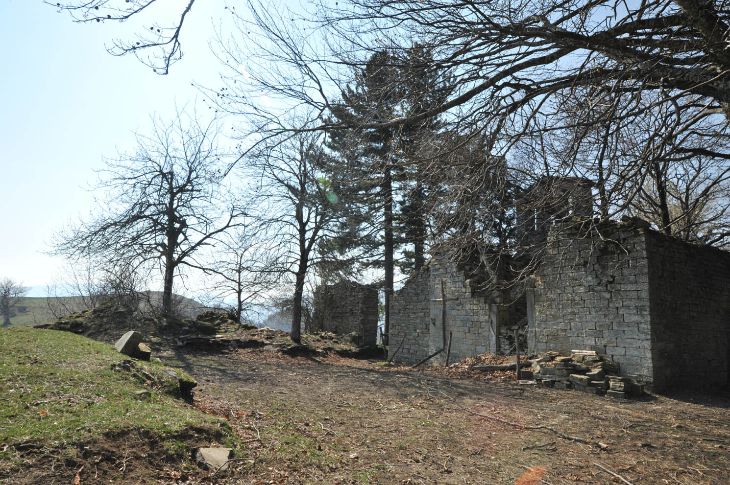 005n/005r2 – Vedute dal retro del complesso religioso, dei resti dell’annesso agricolo e del pozzo (26/03/12 – 18/11/15 - 17/03/23).