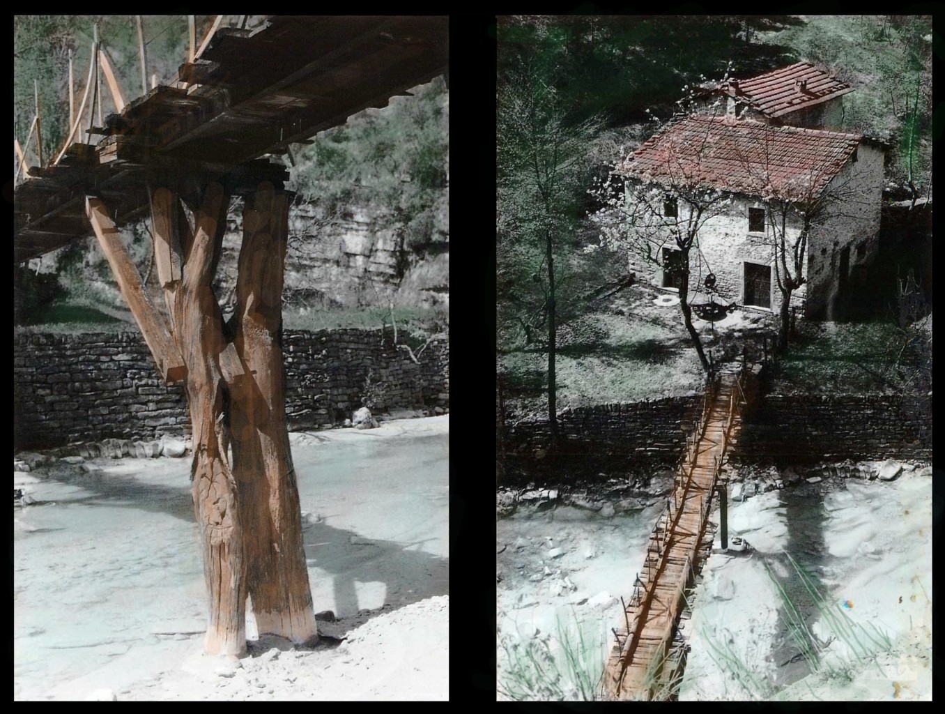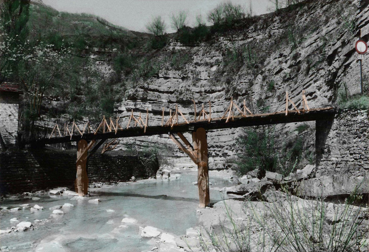 00f5 – 00f6 – 00f7 – Elaborazione da foto da rete degli scorsi anni, quando la passerella era ancora utilizzata e da foto b/n degli scorsi Anni ’80, quando la struttura lignea era già vietata al transito.