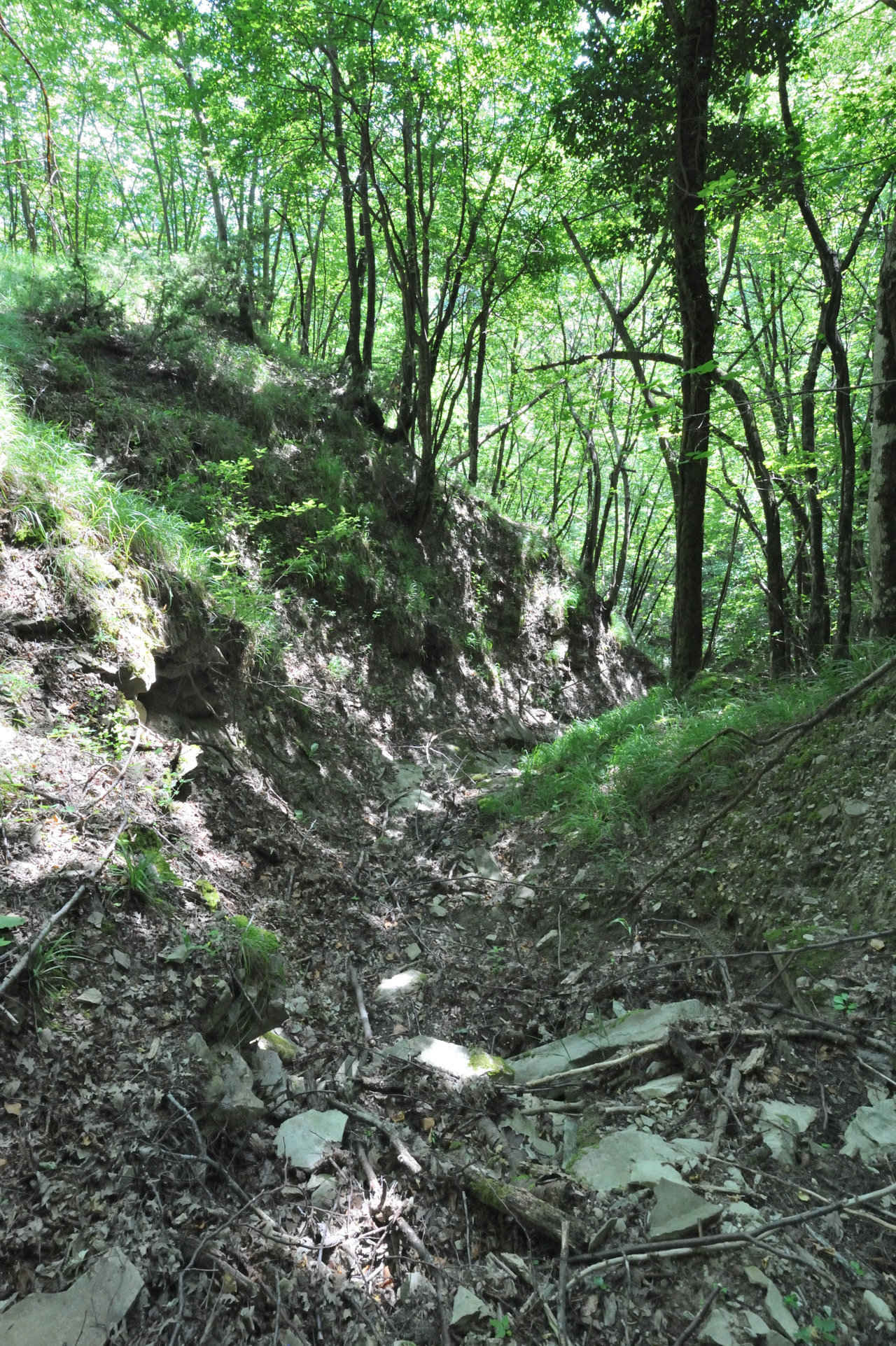 00l1/00l6 – Tracce di mulattiera e ramificazioni del Fosso del Castagnaccio nel versante in dx idrografica lato S. Giavolo (29/06/16).
