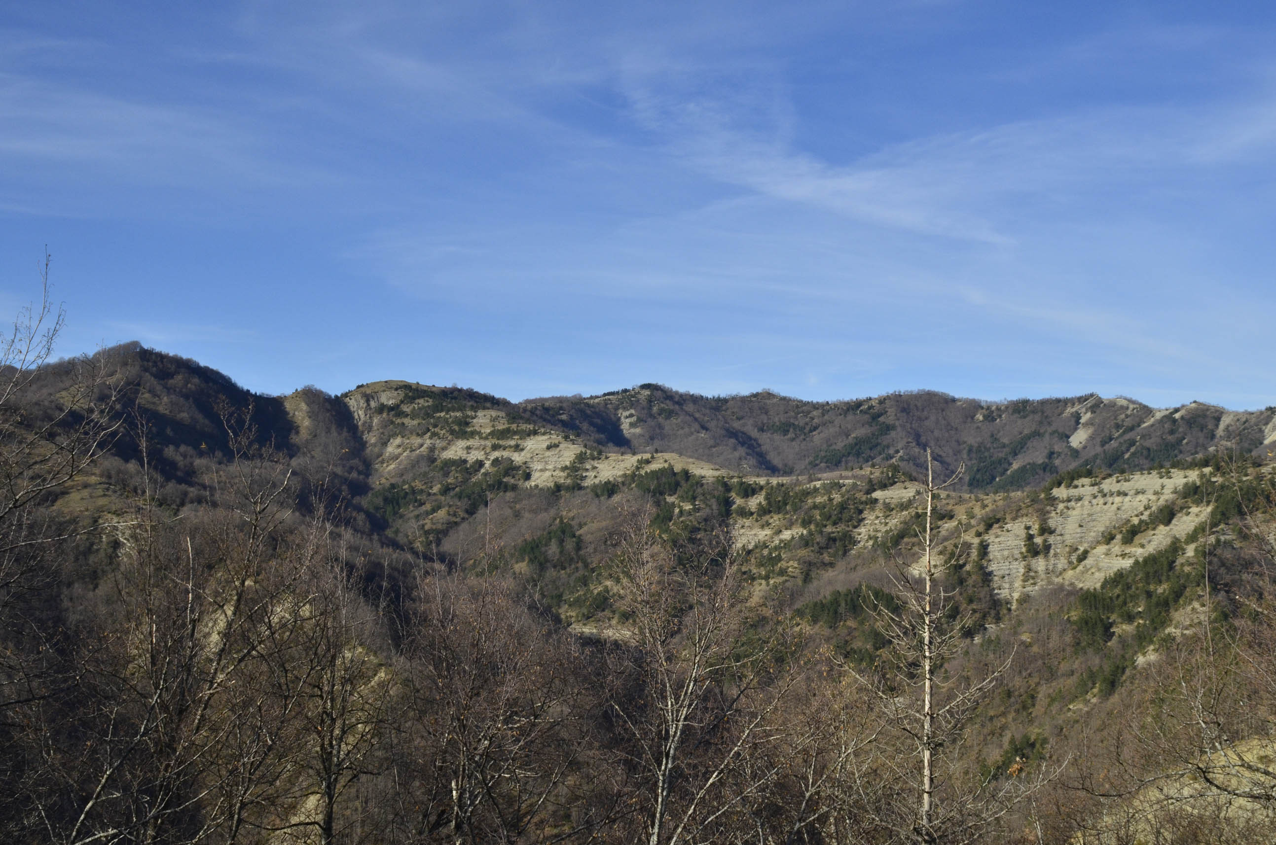 002a/002l – La dorsale di Poggio della Gallona offre i migliori scorci da remoto per l’osservazione delle asperità della dorsale del Crinale della Vacca e dell’insediamento di Ridondone; nell’ultima veduta, particolare della selletta del crinale da cui si stacca il sentiero che scende a Ridondone (18/12/16).