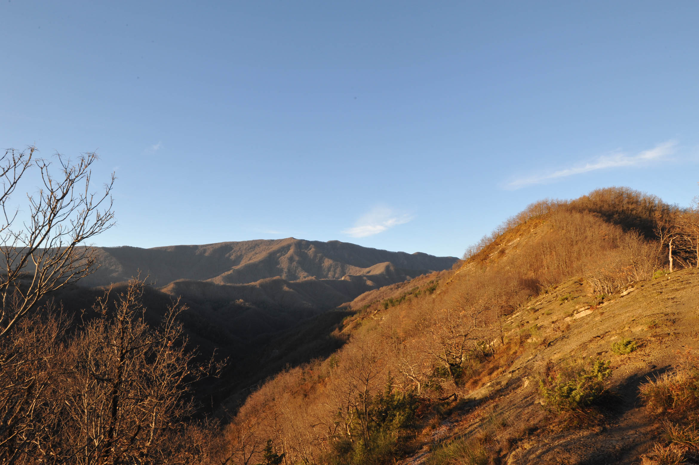 002p/002u – La Valle del Molinuzzo e il sito di Ridondone alle calde luci mattuttine visti dal Crinale della Vacca (22/12/16).
