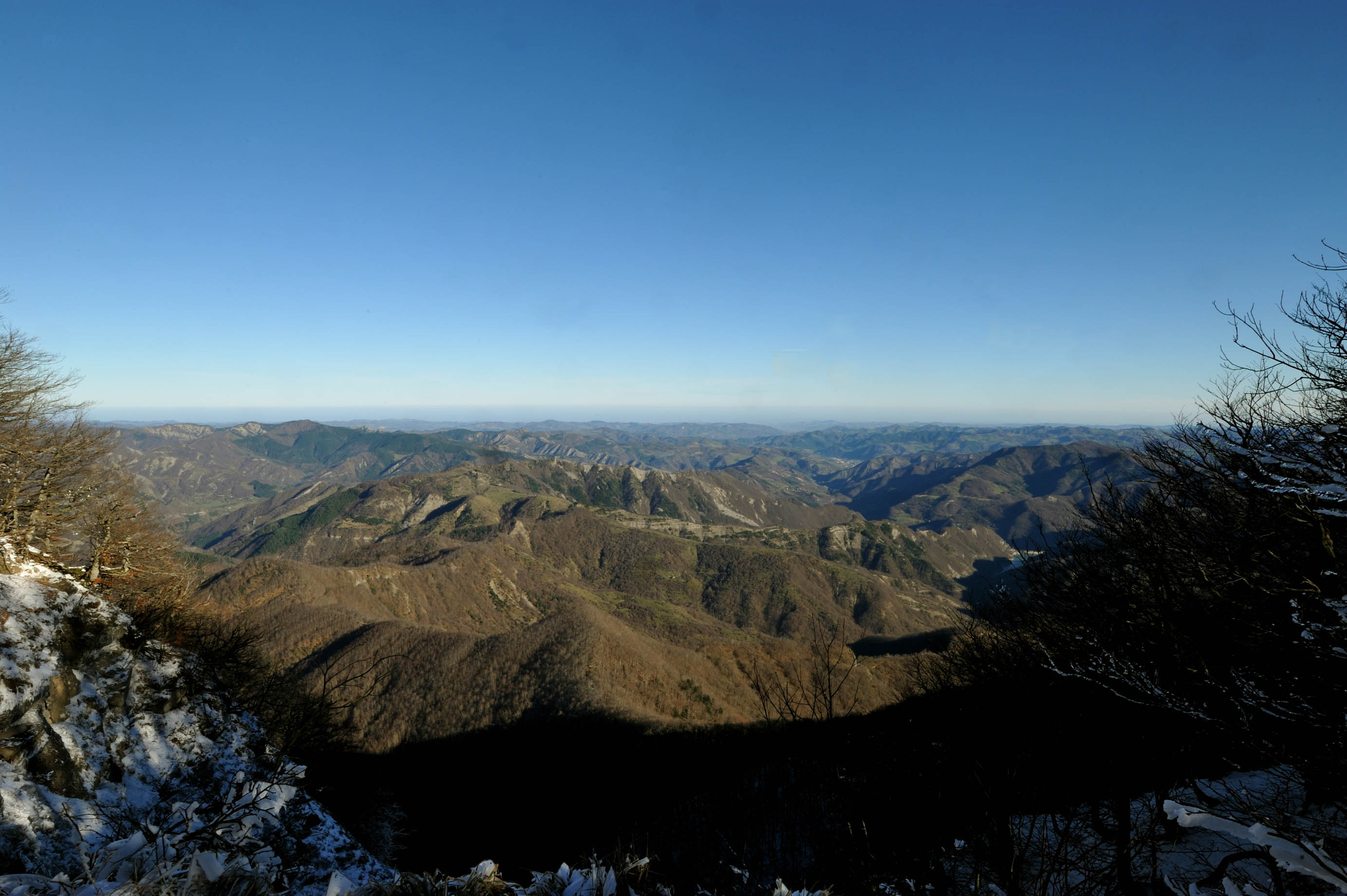 001a – 001b – 001c - Dal Monte Penna, veduta panoramica sulla Valle di Ridràcoli, dove il contrafforte costituisce testata da cui si staccano le dorsali che delimitano il sistema vallivo afferente all’invaso (7/02/11 – 13/01/16).