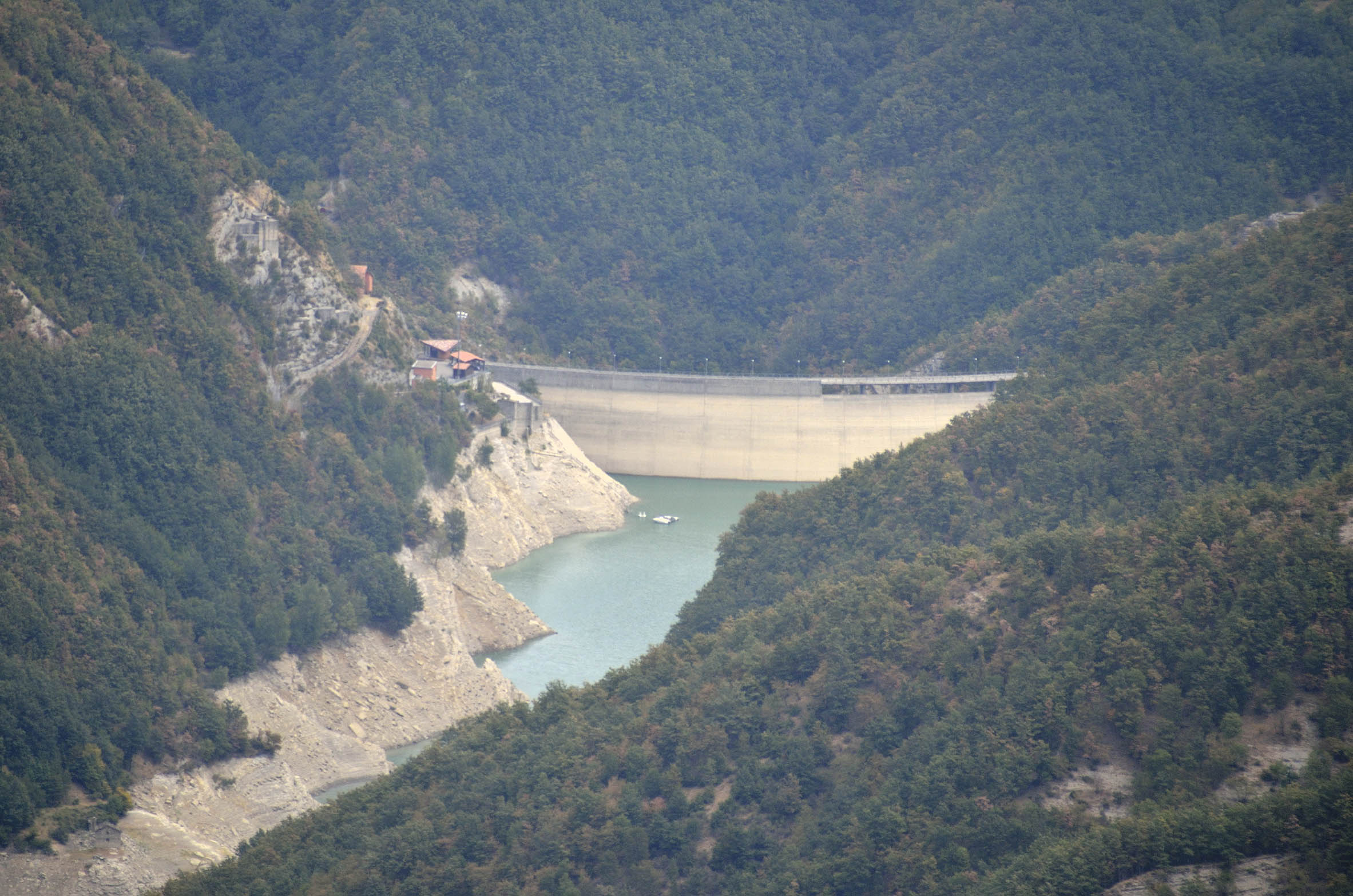 Testo di Bruno Roba (27/08/2019 - Agg. 10/10/2023) - La Valle del Fosso del Ciriegiolone costituisce la ramificazione più elevata di un bacino idrografico omogeneo convergente nel Fosso del Molinuzzo, importante sistema torrentizio che diviene braccio lacustre mentre storicamente si univa con il Fiume Bidente di Ridràcoli proprio sul sito della diga. Sull’asse torrentizio di fondovalle, costituito dalla sequenza dei fossi Ciriegiolone-Aiaccia-Molinuzzo, convergono le valli del Fosso delle Pozzacchere e del Fosso del Ciriegiolone sviluppate e aperte a ventaglio nel versante che si attesta sul contrafforte tra il Monte Grosso, Poggio Capannina, Poggio della Serra e la dorsale che da esso si distacca, e l’adiacente valle del Fosso del Raggio, o Rio Fossati, che mantiene una maggiore autonomia morfologica nel suo attestarsi sul contrafforte tra il Monte Grosso e l’Altopiano di S. Paolo in Alpe. L’ampiezza costante caratterizza l’opposto versante, delimitato da quella lunga ed arcuata dorsale che si stacca da Poggio della Serra per concludersi con Poggio della Gallona, quando precipita oggi verso la diga con un appuntito sprone. L’asimmetria è confermata anche dall’aspetto geomorfologico e vegetazionale, con vasti prati-pascoli e sparse aree denudate ed in erosione di là, pendii più ripidi e boscosi di qua. L’area dei prati-pascoli è quella che ospitava gli insediamenti maggiormente collegati al pascolo brado, ancora oggi praticato stagionalmente nei suoi vasti e dolci pendii, ma anche nel fondovalle e nel versante opposto, benché più impervio, si trovavano insediamenti che si spingevano fino al crinale.