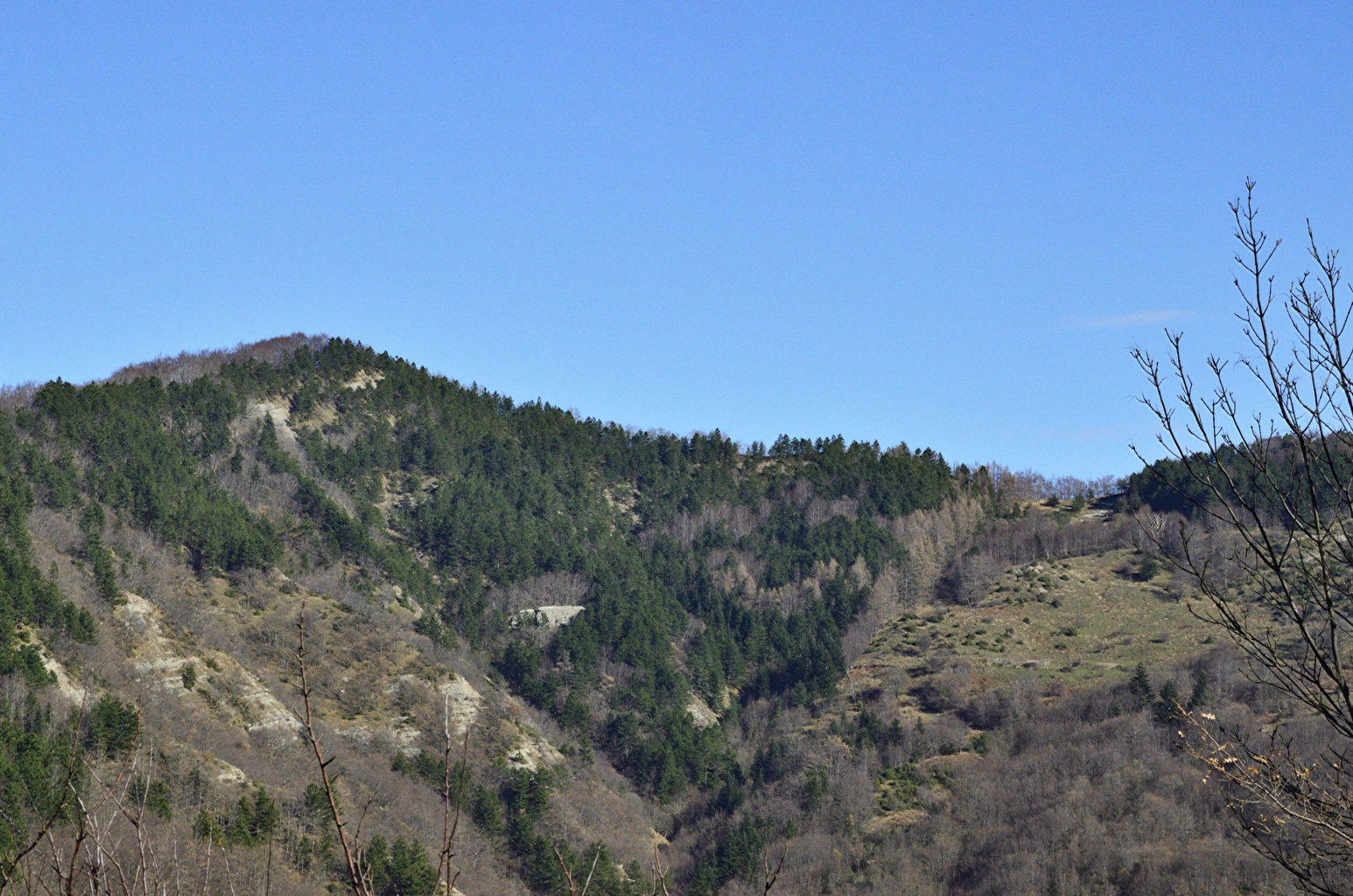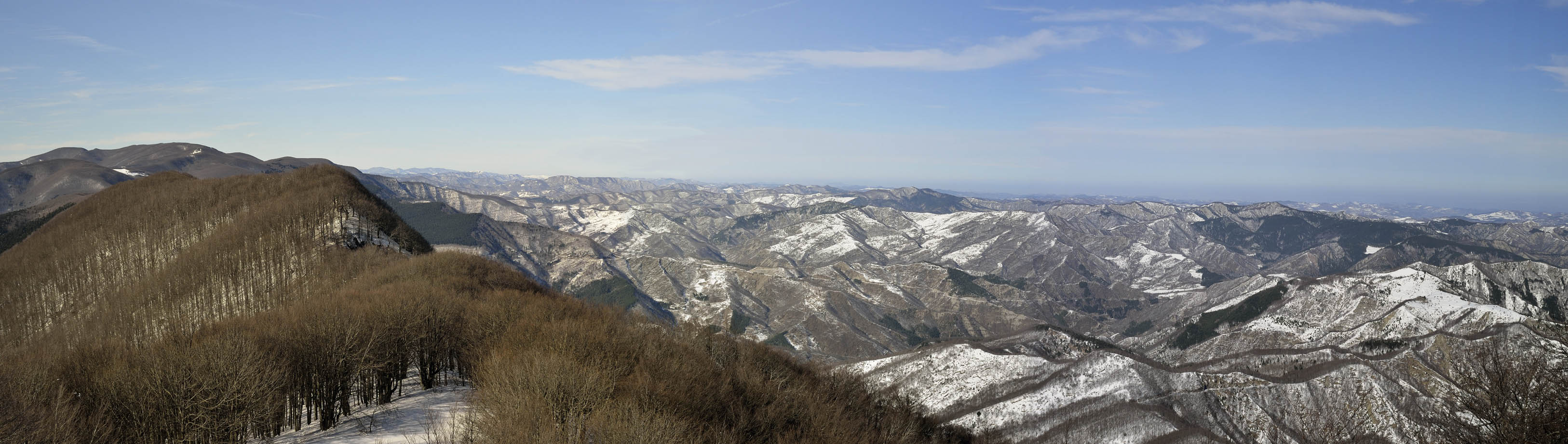 00b1 – 00b2 – 00b3 - Dalla S.F. di Giogo di Castagno, tagliata sul versante orientale di Poggio Piancancelli e Pian delle Fontanelle, scorci panoramici consentono la vista della prima parte del contrafforte fino al Monte Guffone, con la “piramide” del Monte Ritoio in evidenza (22/12/11 – 1/01/19).