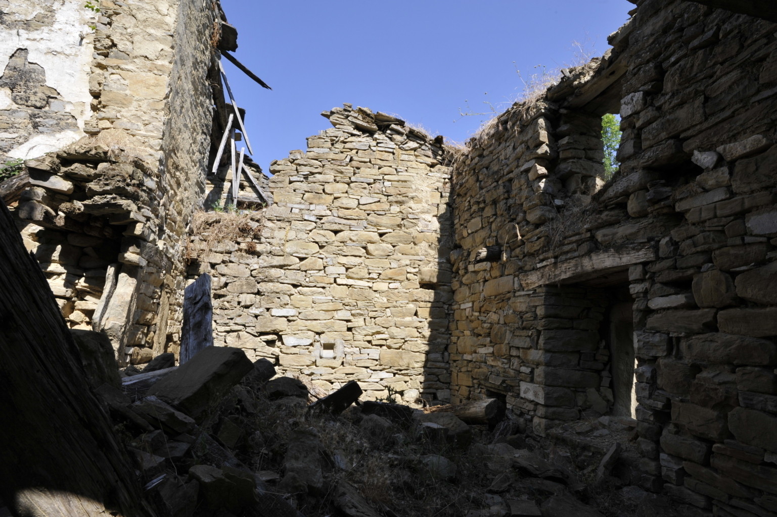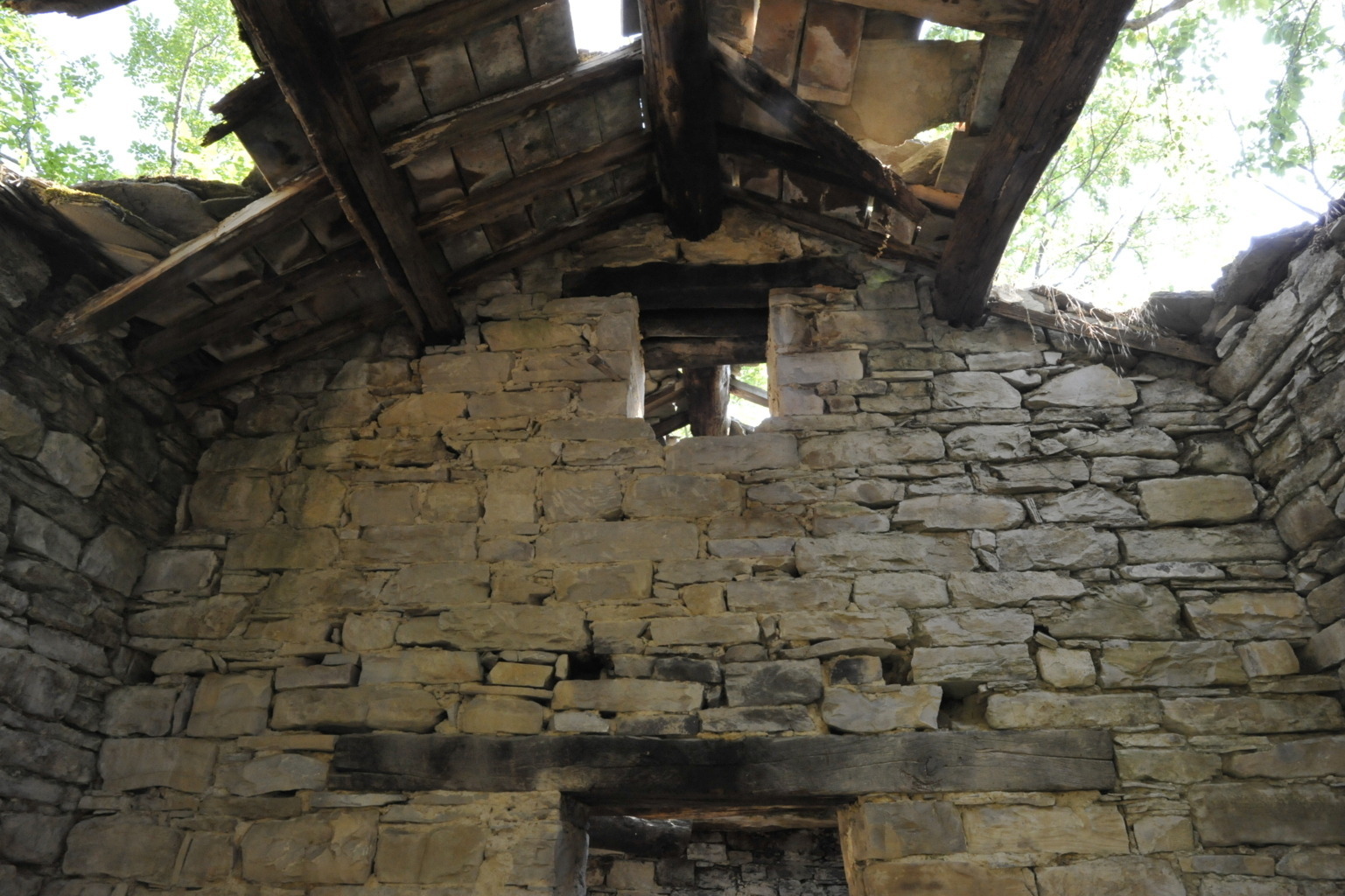 00g1/00g6 – Il nucleo originario del fabbricato pare costituito da una porzione più alta semi aperta, come paiono indicare alcune testate murarie particolarmente nette, poi chiusa a valle da un corpo irrobustito da conci cantonali ciclopici ad uso stalla (24/07/18).