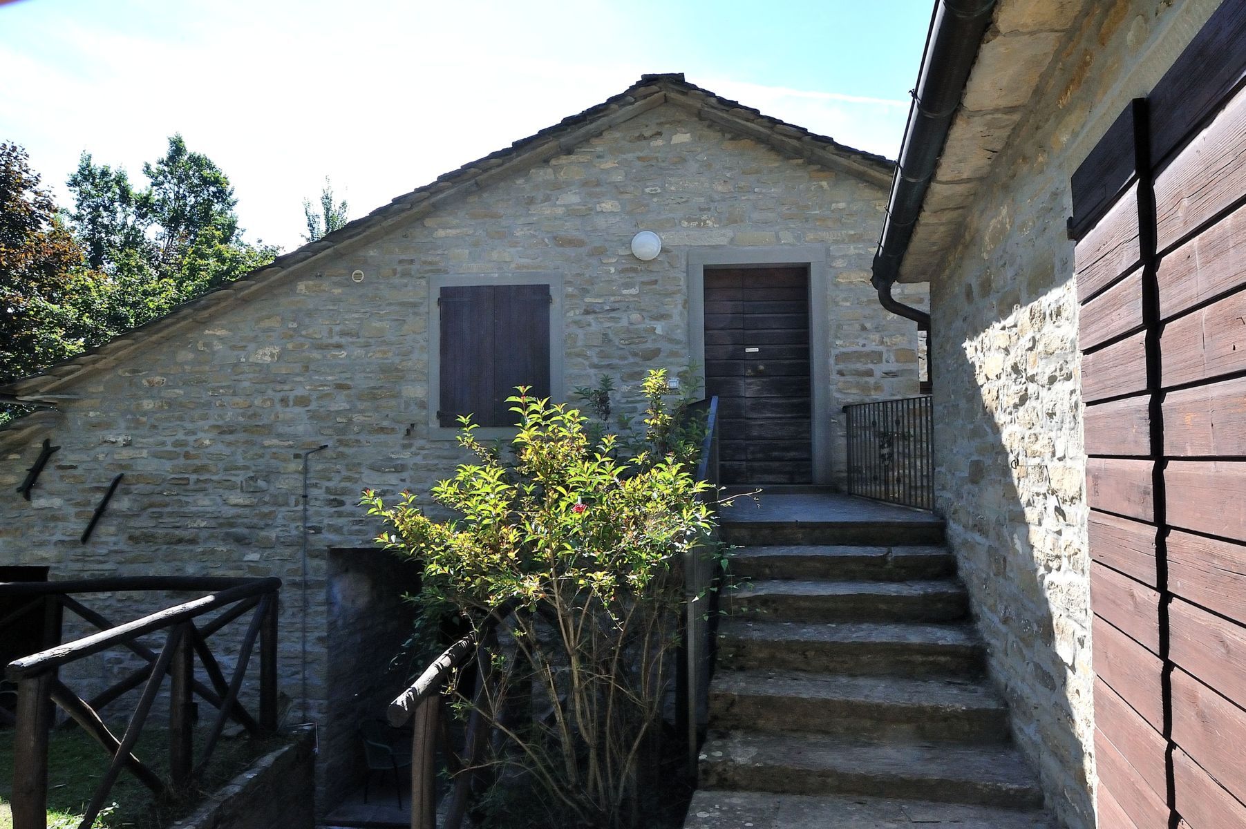 Oltrepassata la maestà il pendio spiana raggiungendo il podere de Le Caselle. È documentato nell’Archivio comunale dal 1548, inizialmente con un fabbricato ma entro qualche decennio ampliato fino a contare, nel 1777, undici stanze e fino ad ospitare due abitazioni certificate dal Giornale di campagna del Catasto toscano, una composta «[…] a terreno 4 stalle, cantina, 2 stallette, loggia, forno e capannetto. I° piano cucina e 2 stanze e capanno. II piano due palchi» l’altra composta «[…] a terreno 4 stalle, loggia, stalletto, forno e capanno. I° piano cucina, 3 stanzette e capanno.» (C. Bignami, a cura di, 1995, p. 37 cit.). La mappa dell’Archivio Comunale di Bagno di Romagna datata 1888-1913 (cfr. C. Bignami, a cura di, 1995, e C. Bignami, A. Boattini, 2022, cit.) riguardante l’attribuzione delle numerazioni civiche, registra però un unico edificio cui assegna il civico n. 10, che risulta composto di 7 locali e un capanno. Dopo l’abbandono alla fine degli anni ’50, negli anni ’70 diviene proprietà ex A.R.F. e, dall’elenco dei fabbricati, risulta della stessa consistenza di 7 vani. Il complesso conserva l’impianto planimetrico originale, restaurato ad uso turistico dalla Romagna Acque e gestito da Idro Ecomuseo delle acque di Ridracoli, così ancora si può osservare il tratto di mulattiera che lo attraversa, con i fabbricati un tempo collegati da un grande lastrone ad uso passerella/ponte sulla mulattiera (cfr.: S. Fabiani, G. Marcuccini, W. Rossi Vannini, 1987, p.102, cit.), oggi sostituito da una più sicura struttura lignea, mentre il percorso turistico risulta leggermente modificato e traslato a monte dei fabbricati.