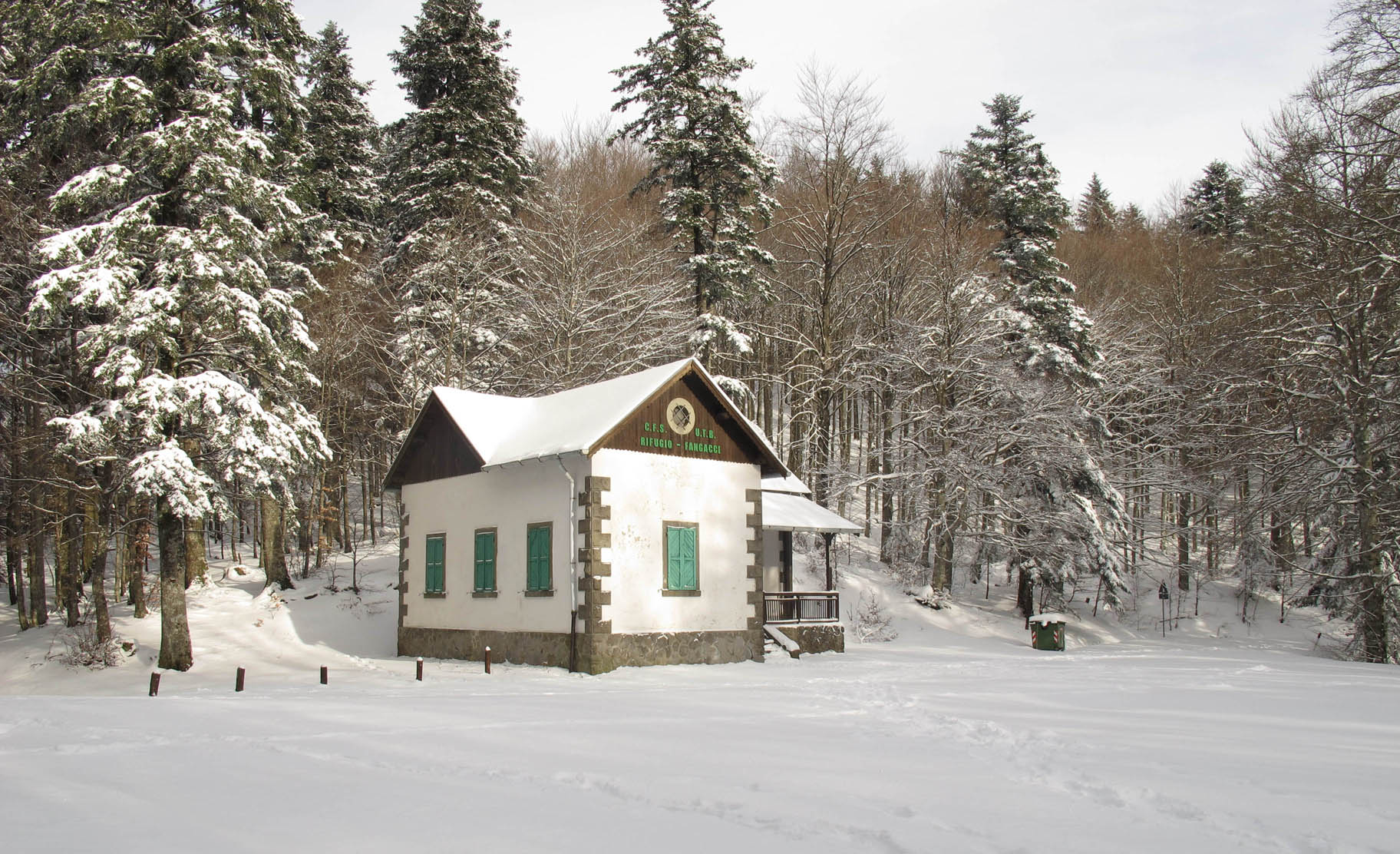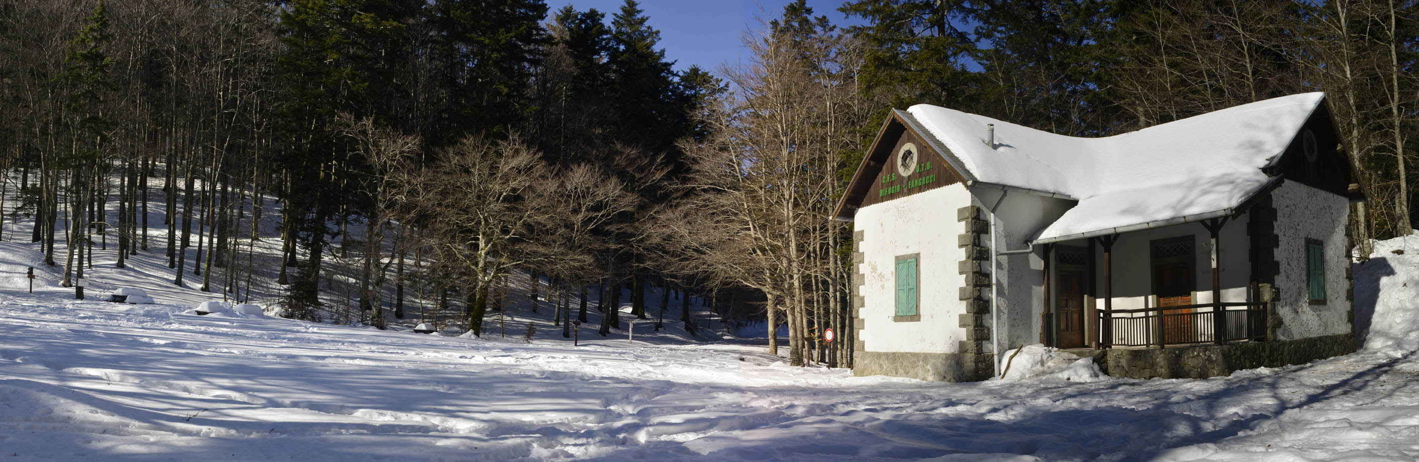 Testo di Bruno Roba - In inverno, in occasione della chiusura di parte della strada provinciale, il Passo dei Fangacci si raggiunge dall’Eremo di Camaldoli, km 3,6 tramite il sent 74, ovvero km 4,9 tramite la SP 69; dal Capanno, tramite lo 00 GEA, km 1,8, o la SP 69, km 2,8.