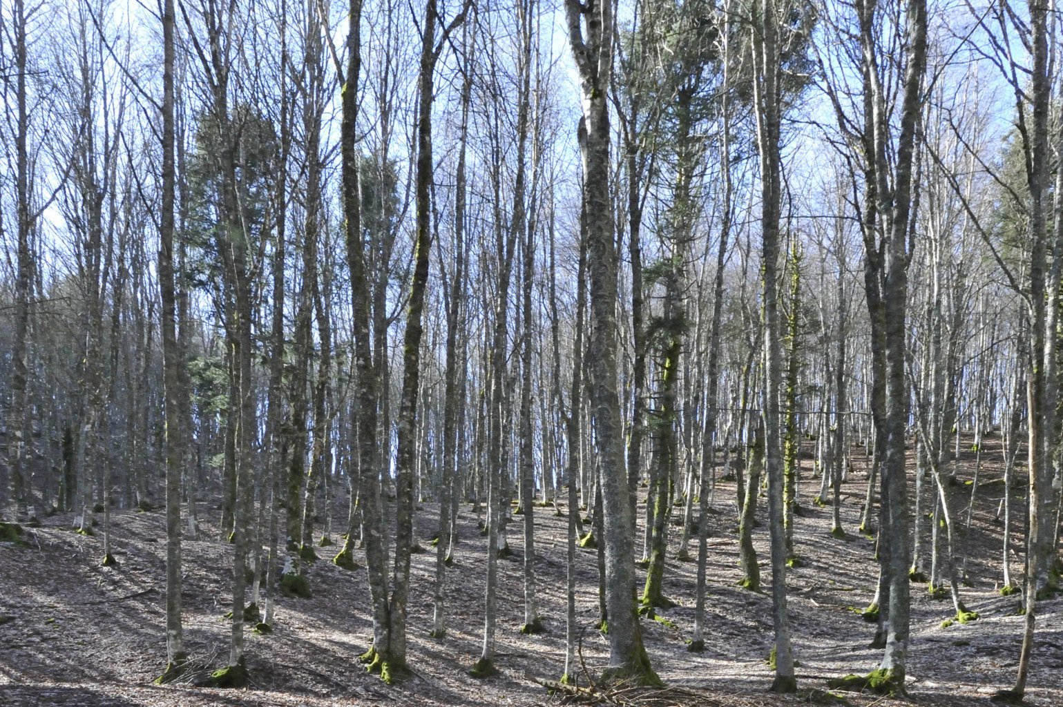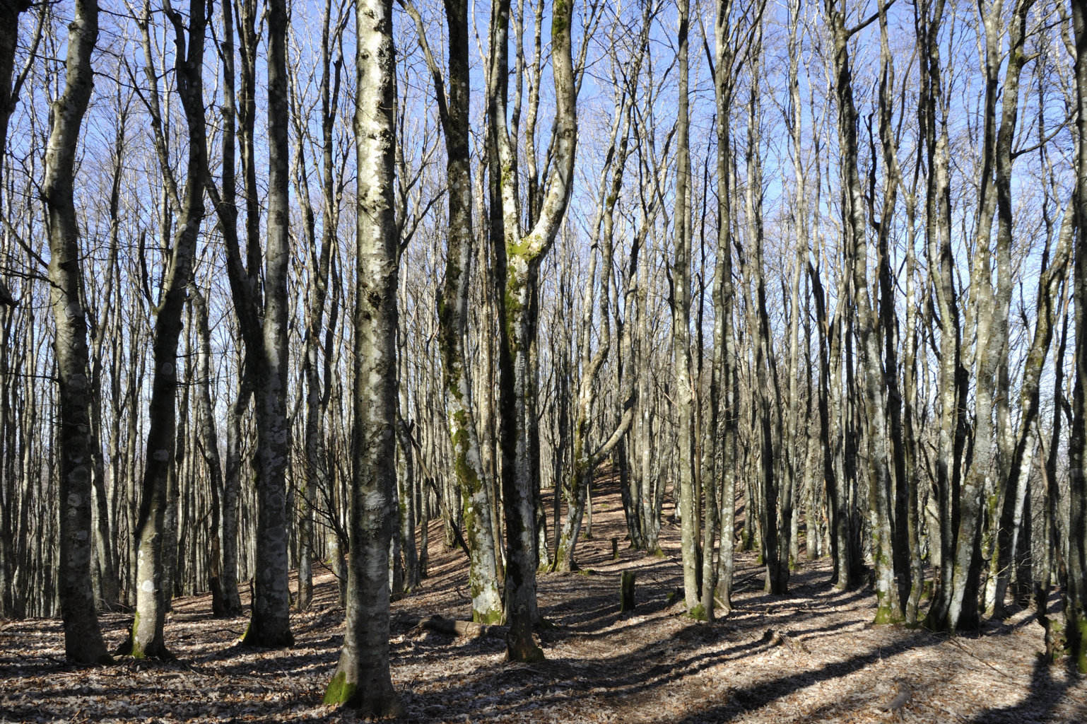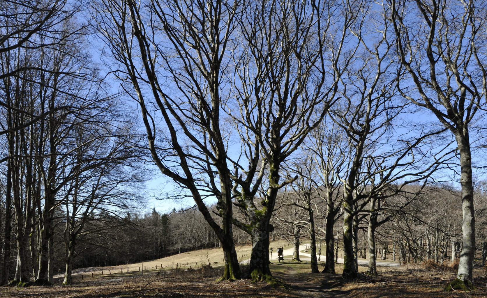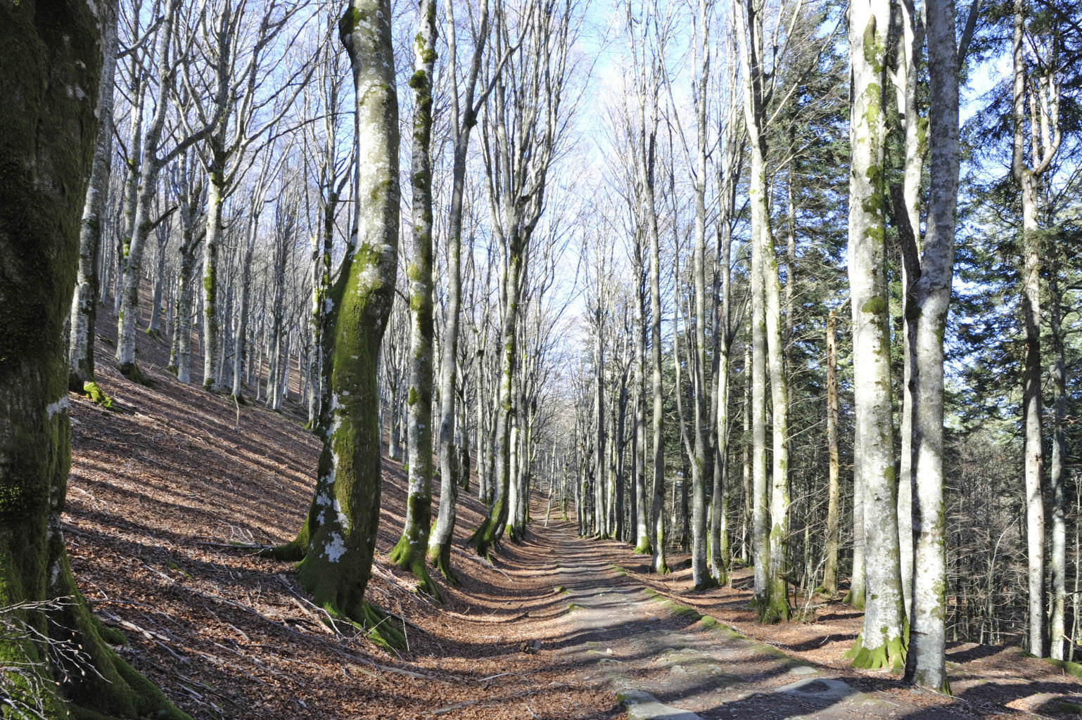 00e1 – 00e2 - 00e3 – Vedute del tratto della Strada della Bertesca tra il rifugio e l’Aia di Guerrino riutilizzato dalla provinciale, ma sul pendio sulla sx pare di individuare la traccia della via antica (7/02/11 - 26/01/12 – 26/05/23).