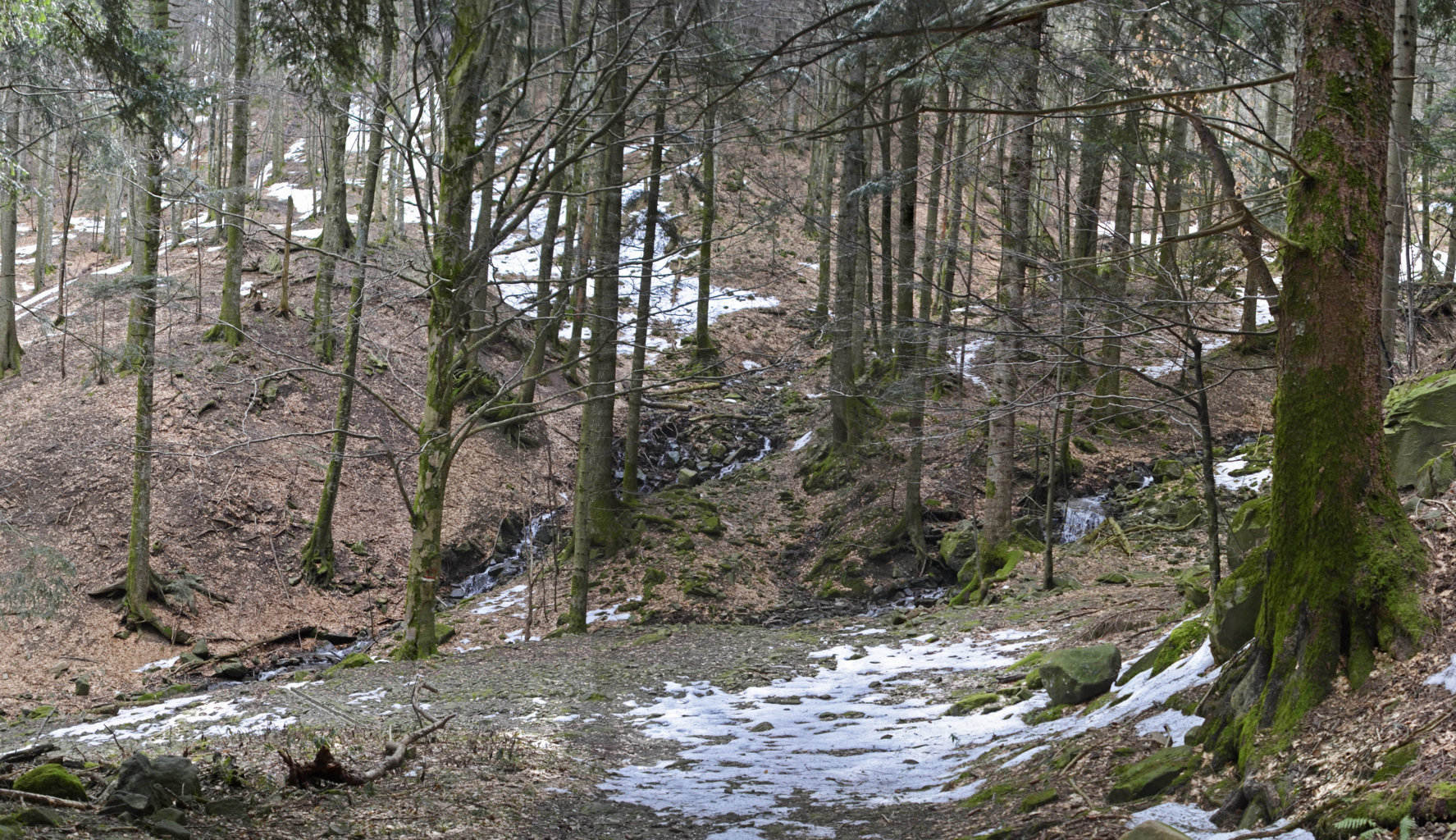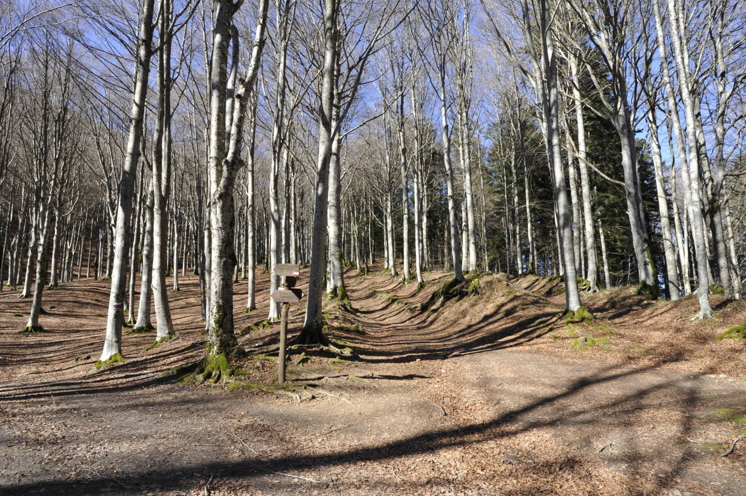 00h1/00h7 - Il tratto della via che dal passo scendeva alla Lama, oggi riutilizzato dal Sentiero degli Scalandrini fino ai pressi dell'attraversamento del Fosso dei Fangacci (8/05/11 – 17/03/20).