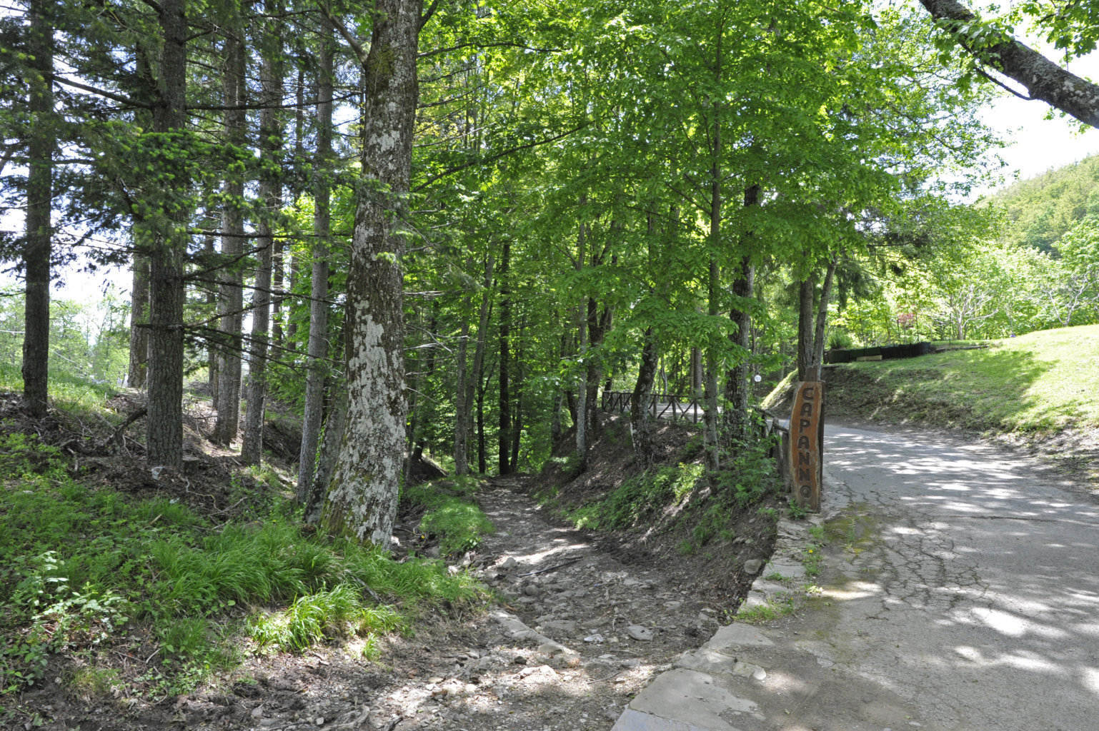 00g7/00g12 – Vedute della via tra Vetriceta e il Passo dei Fangacci, tratto tra il Sentiero Natura del Capanno e l'attraversamento superiore della SP a quota 1118 (26/05/23).