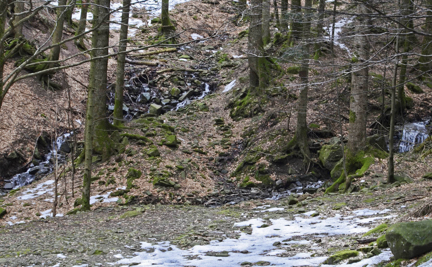 00h8/00h13 – Vedute del Sentiero degli Scalandrini dal ponticello sul Fosso dei Fangacci fino alla cascata e alla scala moderna (9/11/14 – 5/05/15 – 17/03/20).