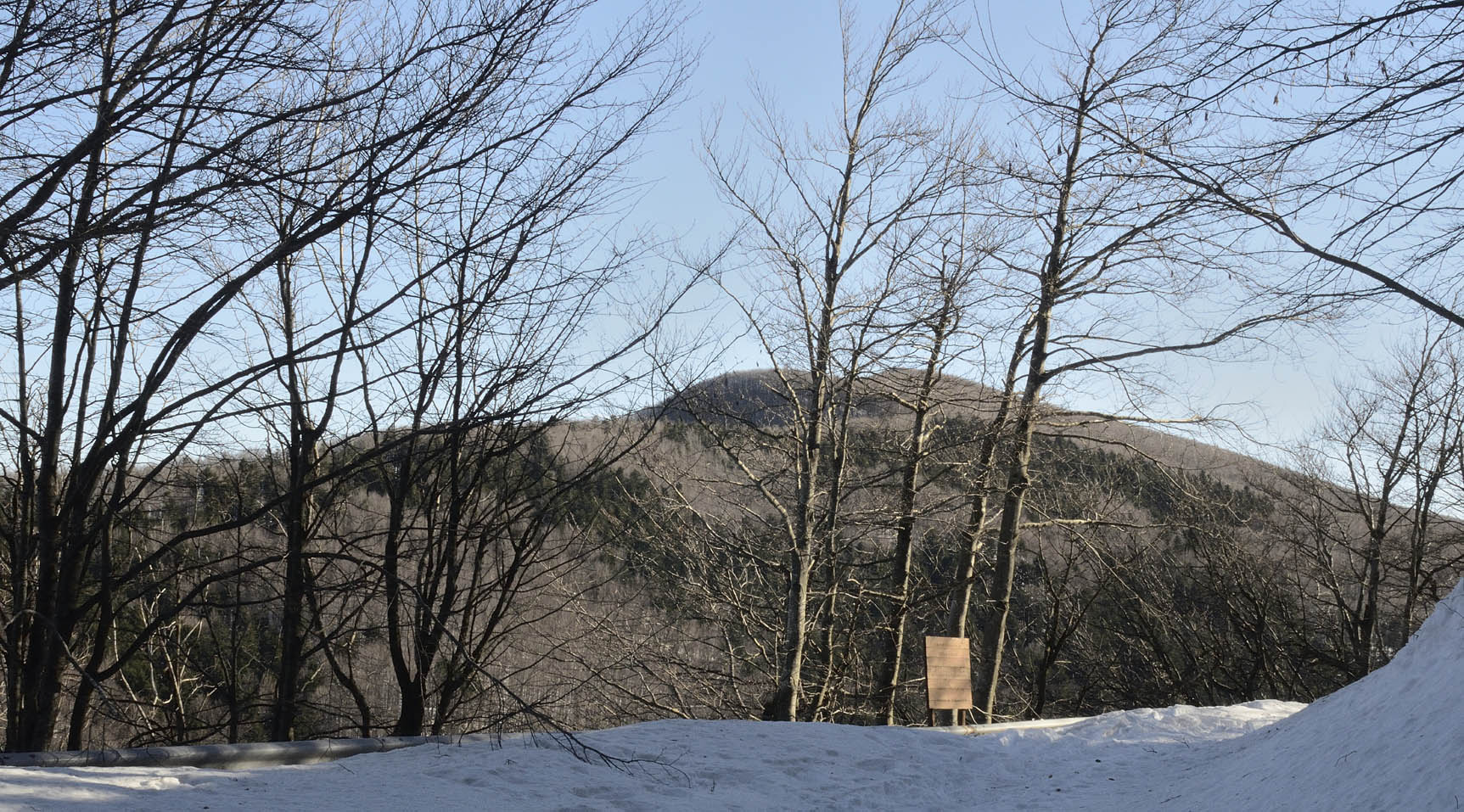 00c1/00c4 - Da Poggio Scali, veduta panoramica verso le dorsali che si divaricano del M. Penna/P.gio allo Spillo da un lato e di P.gio Tre Confini dall’altro racchiudendo la valle del Fosso dei Fangacci e veduta ravvicinata di Poggio allo Spillo, oltre il quale appare la sequenza montuosa dei MM. Nerone, Acuto e Carria (5/02/11).