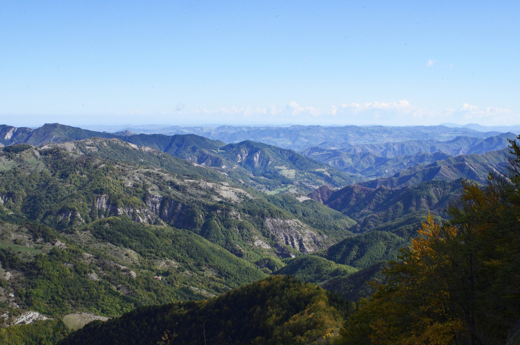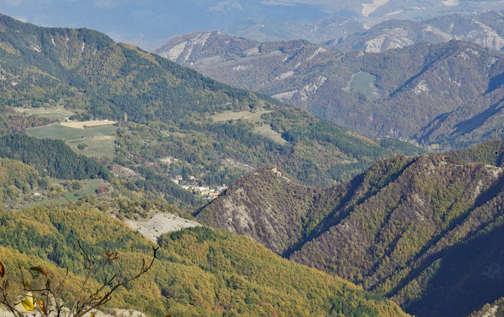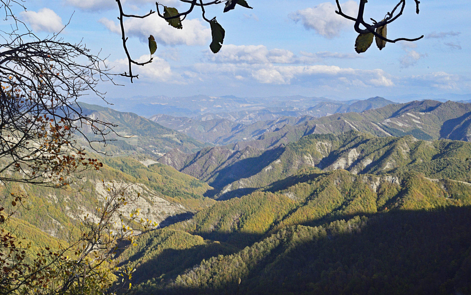 00c4 – 00c5 – 00c6 - Dalla Costa Poggio dell’Aggio Grosso, il simile asse visuale ma da quota inferiore consente uno scorcio della Valle delle Celle costretta tra le pendici di Monte Cavallo con le Ripe Toscane e il Crinale del Corniolino, culminante con il poggio del Castellaccio (31/10/17).