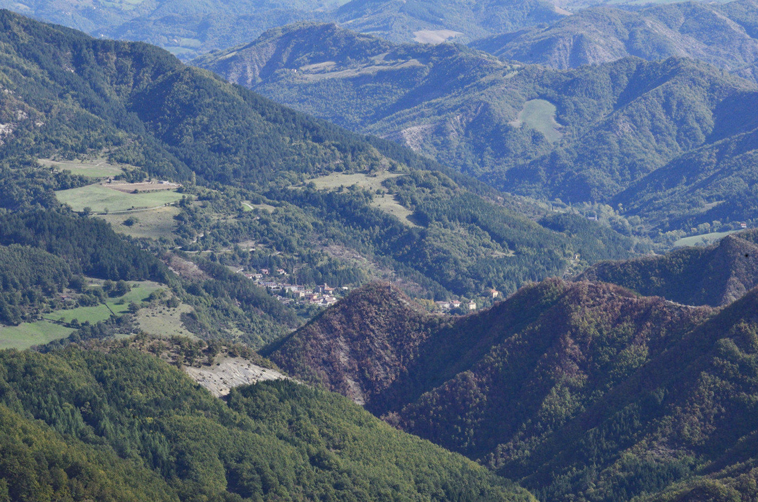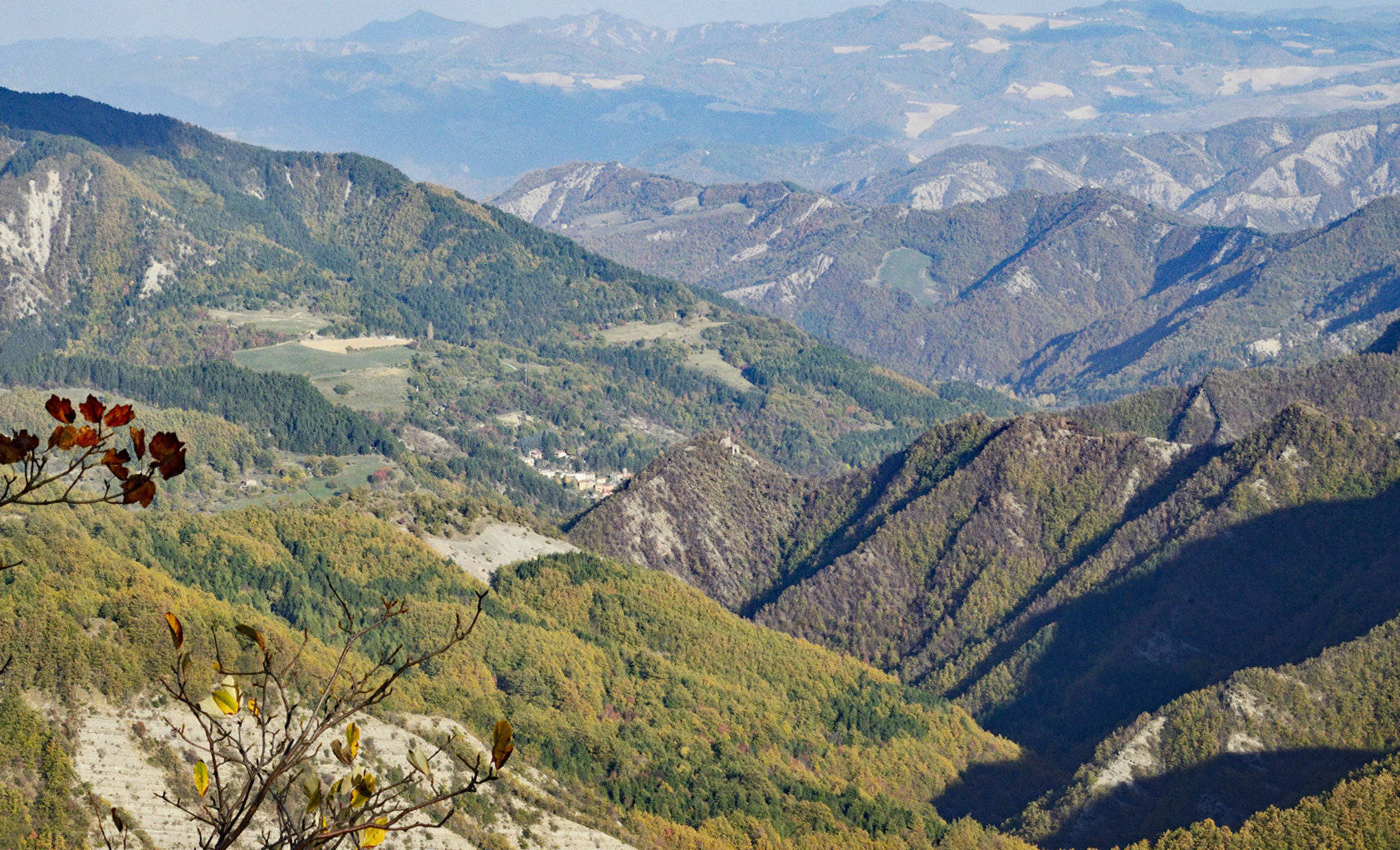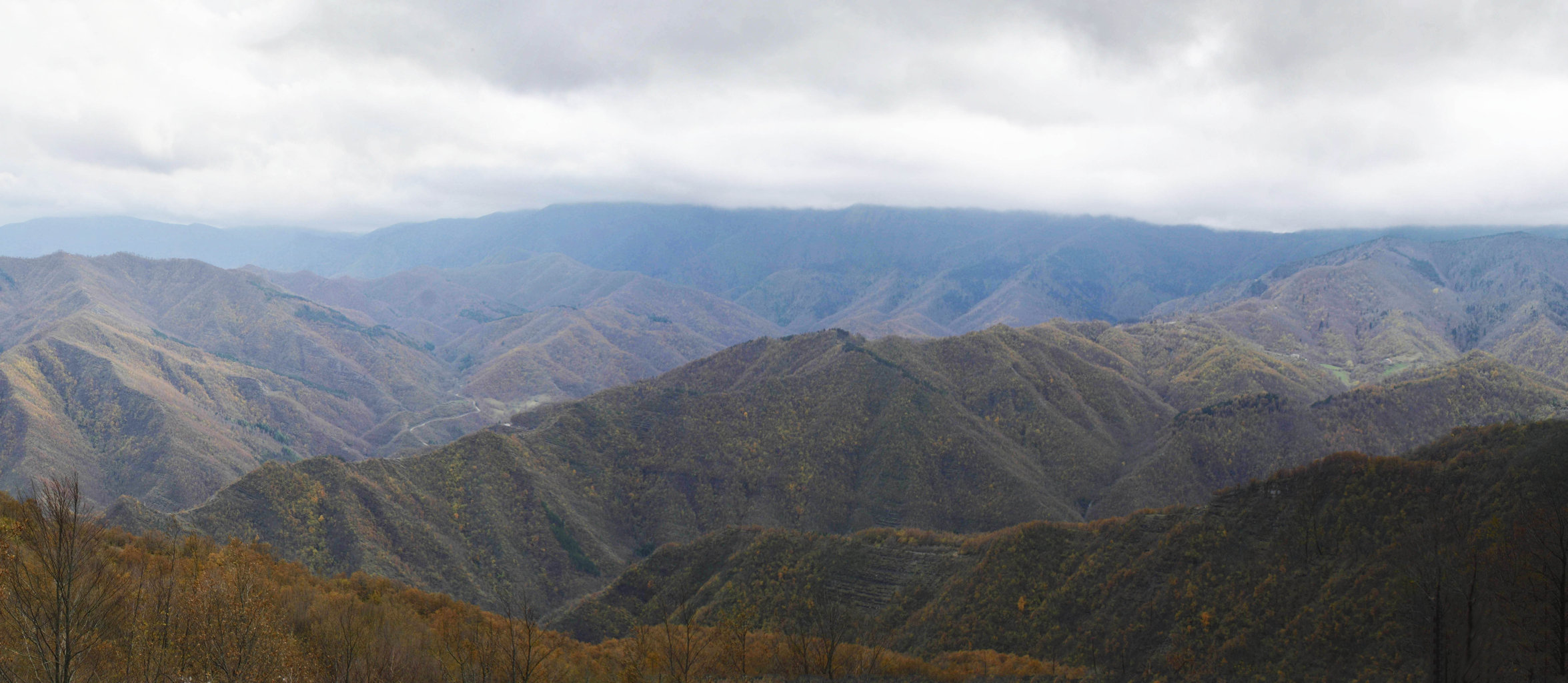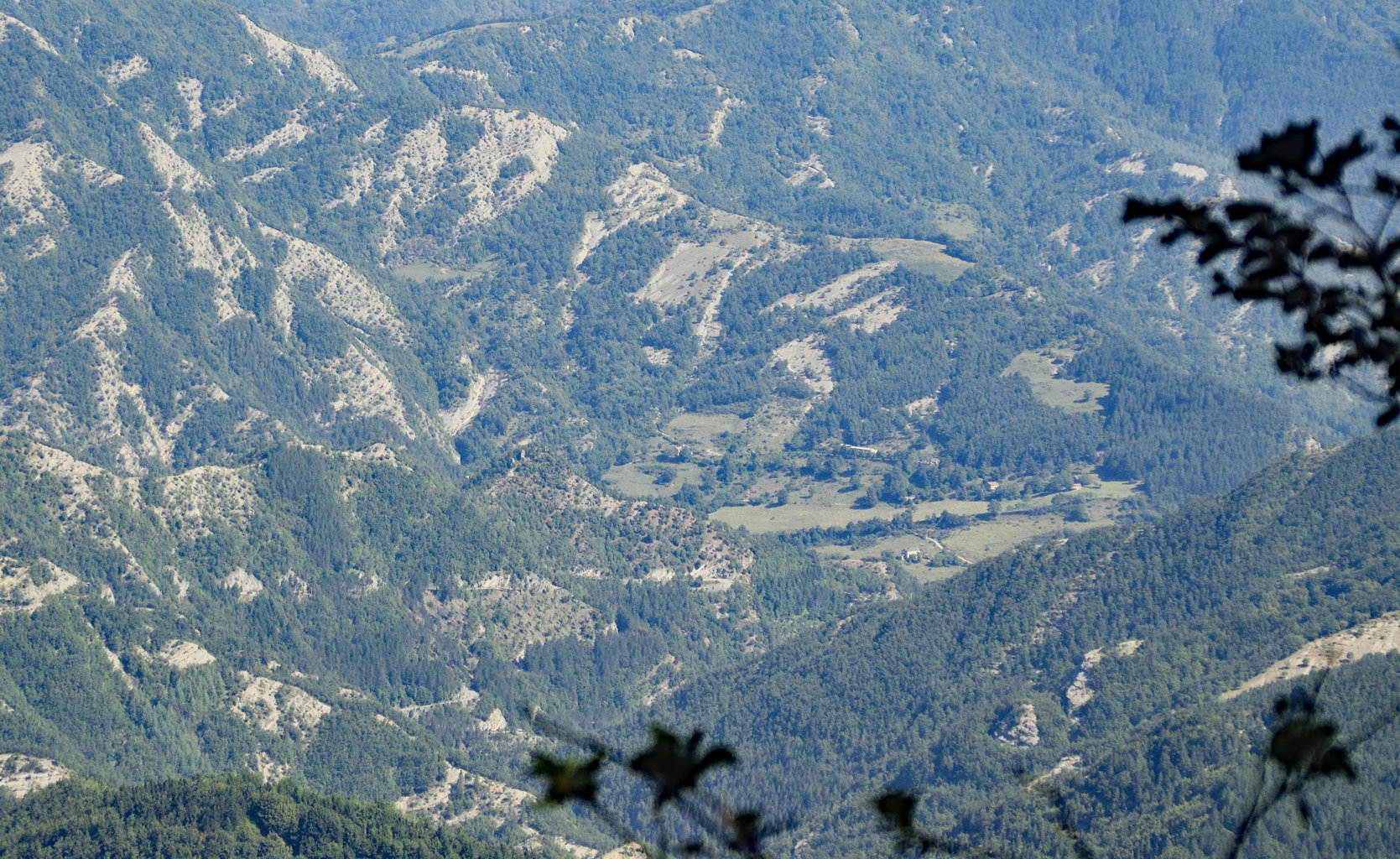 00c4 – 00c5 – 00c6 - Dalla Costa Poggio dell’Aggio Grosso, il simile asse visuale ma da quota inferiore consente uno scorcio della Valle delle Celle costretta tra le pendici di Monte Cavallo con le Ripe Toscane e il Crinale del Corniolino, culminante con il poggio del Castellaccio (31/10/17).
