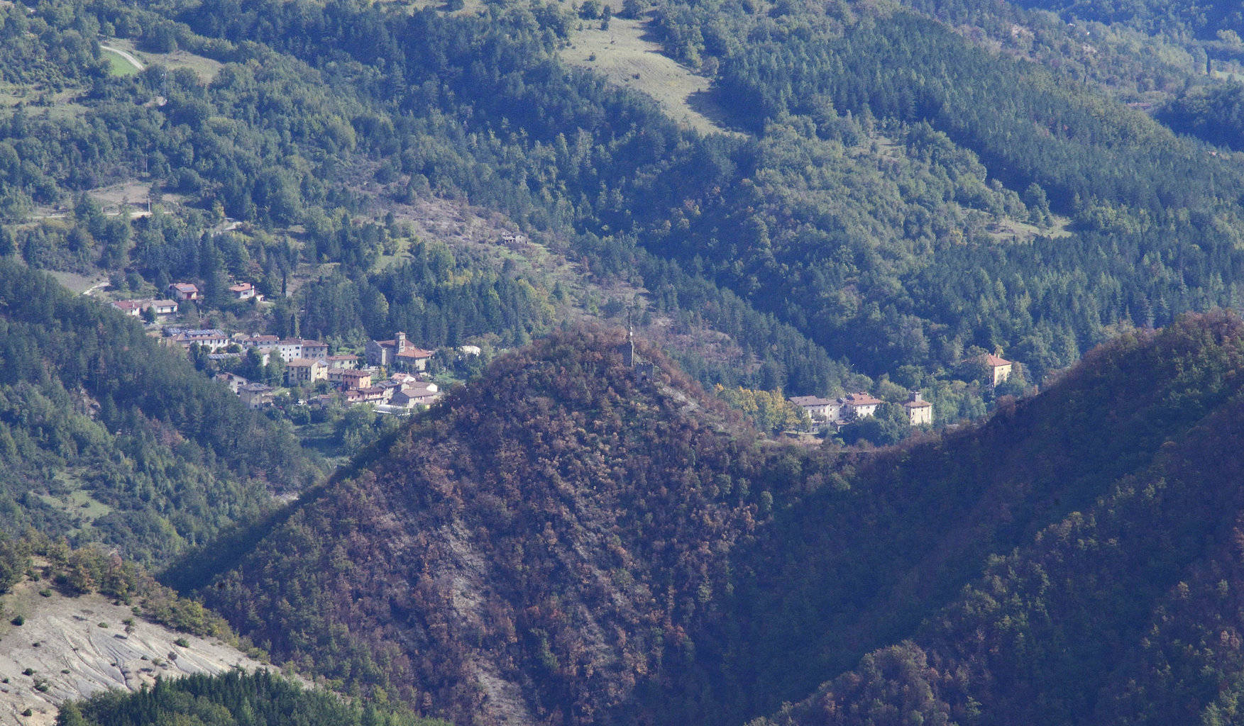 Testo di Bruno Roba - Il Castellaccio di Corniolino si raggiunge dalla S.P. 4 del Bidente sostando a 2 km da Lago in un’ampia piazzola accanto ad un tornante sottostante il castello, da cui si inerpica il sent. 259 corrispondente alla via antica.