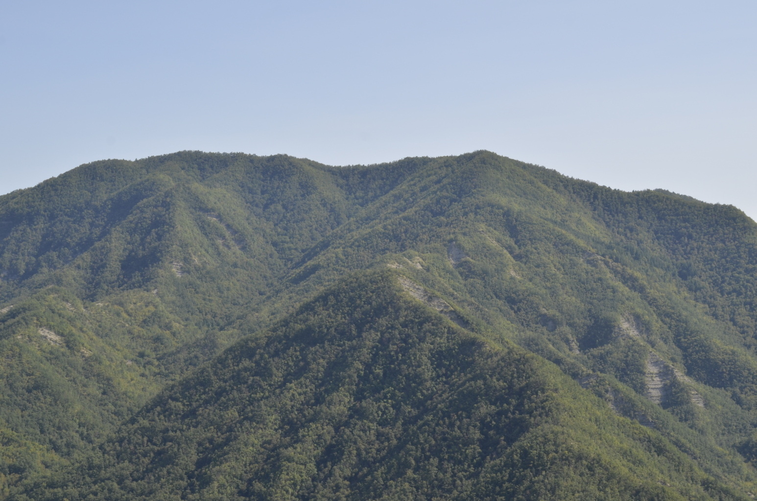 00b1/00b6 – Dai pressi di Poggio Castellina, vedute del versante opposto pressoché frontalmente alle valli dei Fossi di Val di Spugna o delle Valli e di Ronco Vecchio, questa compresa tra il crinale di Poggio delle Stolle, sulla dx, e la dorsale minore che si stacca dal Monte Marino tramite il Monte Verna, poco riconoscibile, sulla sx (28/08/18).