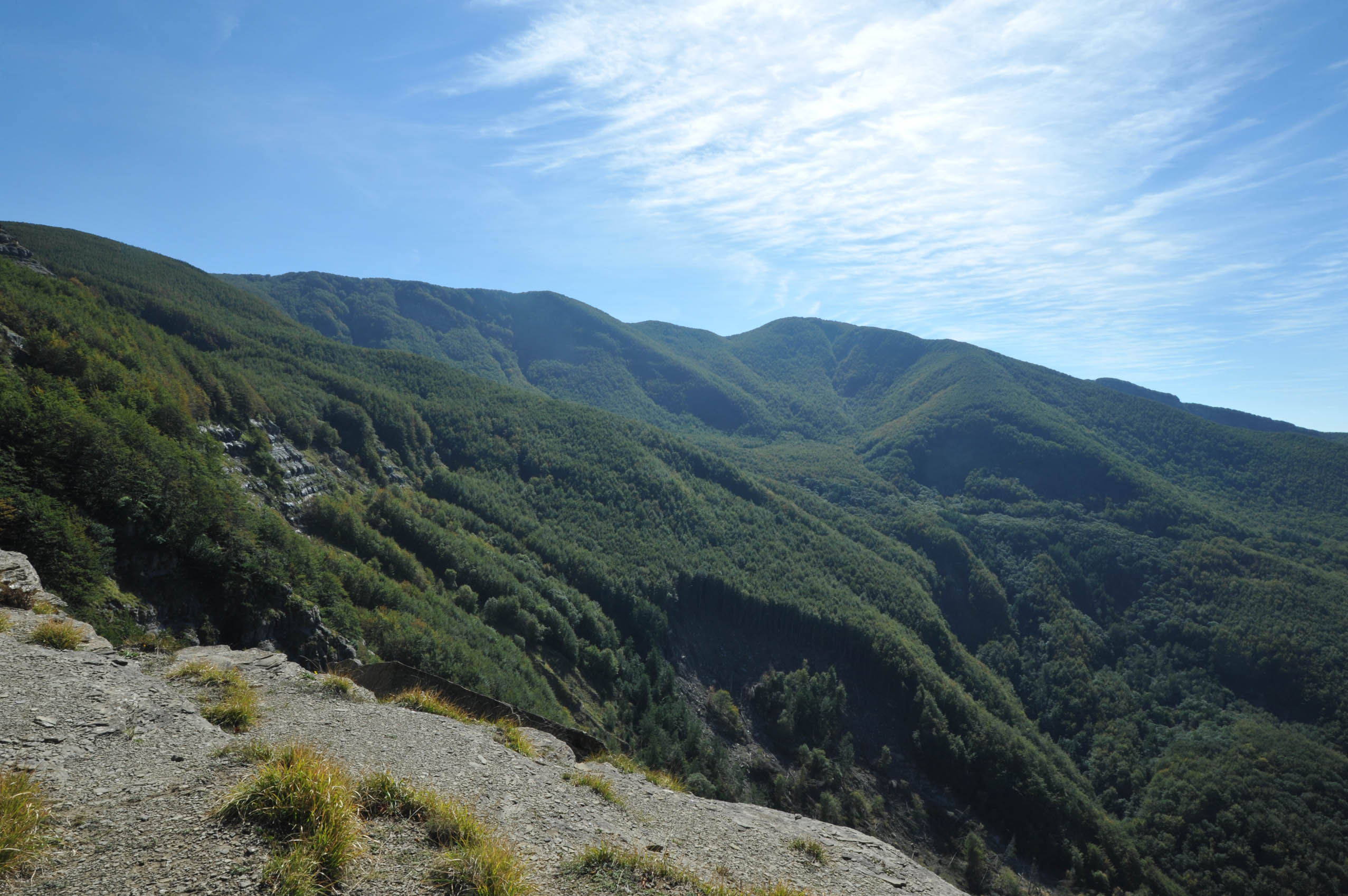 002f/002m – Dalla sommità delle Balze delle Rondinaie, che tagliano verticalmente Pian delle Fontanelle, varie viste del versante nord-occidentale sulla Valle di Castagno del complesso del Falterona, perennemente instabile (27/09/11 - 20/06/12 – 26/09/14 - 30/10/14).