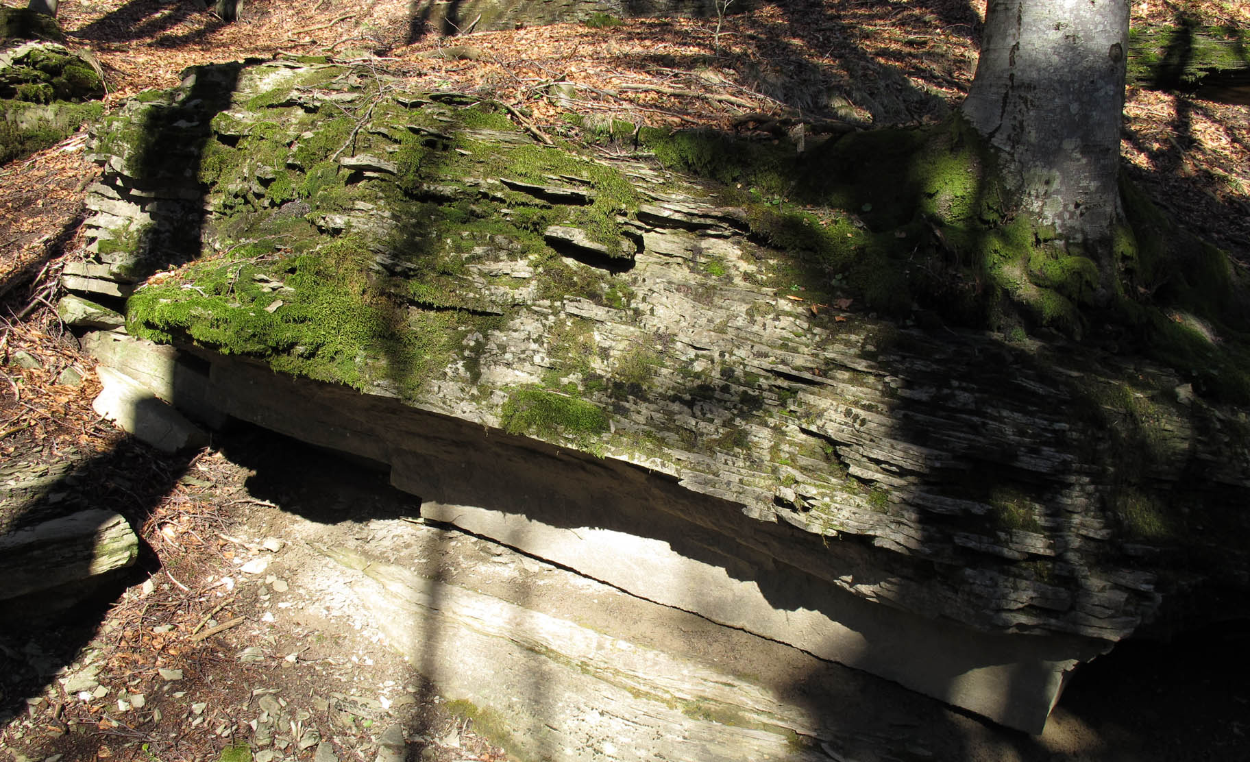 003a/003l - 002r/002z – La Giogana oltre il Raggio Lungo prosegue fino al versante meridionale di Poggio Pian Tombesi, cosparso di grossi massi erratici di arenaria scivolati lungo il pendio che evidenziano le sottili e ondulate strutture sedimentarie tipiche delle torbiditi, ovvero depositi del mare profondo (13/01/11 –24/05/11).