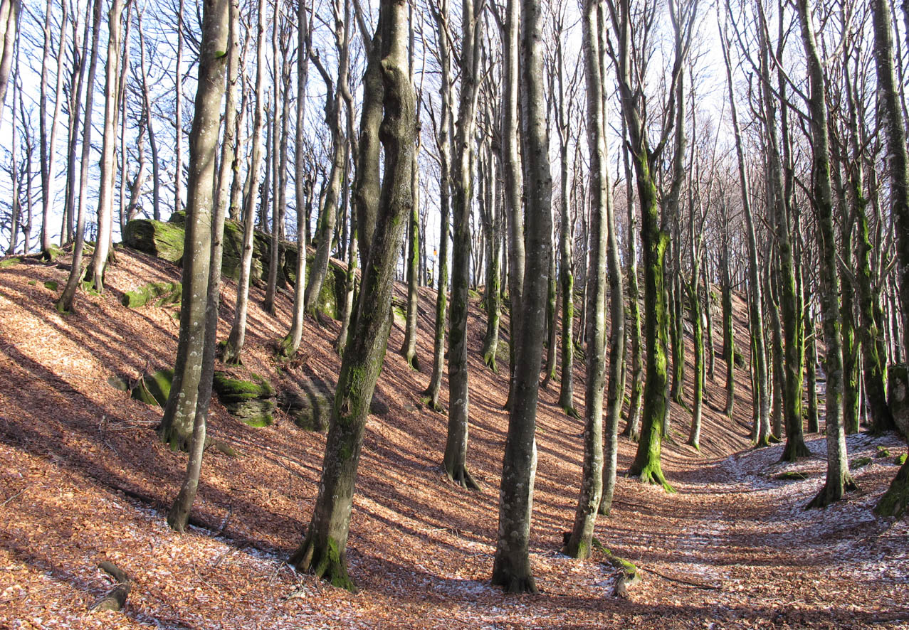 Per avere un primo testo descrittivo di questo territorio appenninico occorre risalire alla donazione del Campo Maldoli del 1012 e interpretarne i confini, limitati al crinale della Giogana a N, al Monte Faggiolo a O, al Monte Cotozzino e alla strada che conduceva in Romagna a Est, alla confluenza dei Fossi di Camaldoli e della Duchessa a S. Dopo la confisca del vasto feudo forestale da parte della Repubblica di Firenze a danno dei conti Guidi, prima l’alpe del Corniolo, la selva del Castagno, poi la selva di Casentino ovvero di Romagna che si chiama la selva di Strabatenzoli e Radiracoli tra il 1380 e il 1442 furono donate all’Opera del Duomo di Firenze in Romagna (il termine contenuto in atti è “assegnato in perpetuo” - A. Gabbrielli, E. Settesoldi, 1977, pp. 15-16, cit.). «Il vasto territorio ricevuto in dono si estendeva soprattutto nelle valli del Bidente, allora Romagna Toscana, per circa 13.000 ettari. Su questa parte di terreno iniziò ben presto una fitta antropizzazione: dato che la vita dei contadini era molto dura, si cercò di usare la maggior parte dei terreni disponibili per le colture agricole, consumando gran parte del manto forestale con un progressivo innalzamento del limite delle foreste sulle zone con forte pendenza e non adatte alla coltivazione. Si spiega così il progressivo espandersi dei “ronchi” e della messa a coltura dei terreni, che l’Opera in un primo momento cercò di arginare, ma senza risultato a causa della distanza dai centri di amministrazione e della scarsità del personale di sorveglianza. Ciò creò un impoverimento dei suoli che, per chi si affaccia oggi dal Monte Penna, è ben evidente in quei “ronchi” e nella “biancheria” formatasi nel tempo in quei territori dove si è venuto a esporre il sottosuolo agli agenti atmosferici con messa in vista della formazione marnoso-arenacea sottostante.» (M. Ducci, G. Maggi, B. Roba, 2024, p. 37, cit.). Nel 1610 Cosimo II affidò all’Opera la Faggeta di Sua Altezza Serenissima il Granduca, che il principe utilizzava per le necessità militari, ovvero una striscia di bosco adiacente alla linea di crinale che si estendeva fino a Poggio Lastraiolo e ai Monti Gabrendo e Giogarello per mezzo miglio in larghezza e fino a un miglio dal crinale. Da un documento del 1637: «[…] in Casentino vicino alle macchie e boscaglie di detta Opera si trova una macchia o faggeta propria di S.A.S. della quale faggeta per servizio massime dei remi da galera sin dall’anno 1610 dal Serenissimo Granduca Cosimo II fu data la cura e custodia a detta Opera e sua guardie e di nuovo poi nel 1613, per il medesimo rispetto, fu dalla prefata Altezza Serenissima comandato al Signor Soprintendente di detta Opera che la faggeta facesse riguardare massime […]» (A. Gabbrielli, E. Settesoldi, 1977, p. 25, cit.). Se già dagli anni 1559 e 1564 la Legge dell’Alpe, fino alla decadenza nel XVII secolo, obbligava con disappunto locale al rispetto della faggeta secondo le suddette distanze dal giogo, fin dal 1619 sorsero controversie con i confinanti Conti di Urbech e le comunità locali non tanto sul riconoscimento dei confini quanto per i nuovi controlli posti in essere da nuovi affidatari: «[…] cercando di proibire alle guardie di detta Opera la cura e custodia di detta parte di faggeta et il referire all’Opera i danni dati in essa, ne occuparono poi e di continuo ne occupano, il possesso nonostante anco che da altri giudici, già deligati in questa causa, ciò fusse loro proibito […]» (A. Gabbrielli, E. Settesoldi, 1977, p. 25, cit.). Nel 1785 l’Opera acquistò dall’Ospedale di S. Maria Nuova di Firenze l’Abetina di Poggio Corsoio, rinomata per la particolare dimensione delle sue “antenne” da marina. Nel 1818 e nel 1840, a causa dell’abbandono e malgoverno in cui versavano, le foreste gestite dall’Opera vennero affidate in enfiteusi per 100 anni ai monaci di Camaldoli e nel 1857 Leopoldo II le acquisì a titolo personale unendole alla tenuta di Badia Prataglia, acquistata nel 1846. I rilievi appenninici ricadenti nei territori dell’Opera si trovano citati in occasione della riconfinazione della Bandita di Campigna, con bando del 1645, e della suddivisione amministrativa della foresta, operata nel 1655, in parti da assegnare alle guardie delle selve, alcuni con utilizzo di toponimi in disuso e di difficile identificazione. Il crinale era detto Giogo, o Giogo appennino o Giogana, quindi venivano citati i Poggi Martino, Zaccagnino, di Mezzo, Palaio, delle Secchete (oggi Palaio) e la Calla di Giogo o a Giogo; in documenti successivi si trovano menzionati inoltre la Falterona, Pian delle Fontanelle, Monte Corsoio, le Rivolte di Bagno, estremo limite sud-orientale presso Cima del Termine e il c.d. Poggio di S.Paolo in Alpe. Poggio Scali e Sasso Fratino vengono citati nelle “lettere di taglio” del 1701. La lettura dei confini contenuta nei contratti del 1818 e del 1840 tra l’Opera e i monaci di Camaldoli è infine utile per un ragguaglio toponomastico su rilievi e luoghi principali quali Sodo dei Conti, Giogo di Scali, Giogo Seccheta, Prato al Soglio, Prato Bertone, Prato alla Penna, Gioghetto (presso il Passo dei Fangacci), crine dei Beventi e dei Segoni, Monte Cucco, elencati in ordine verso oriente. Di interesse è la lettura dei verbali conseguenti ai sopraluoghi o “visite” degli “operai” o funzionari dell’Opera, di cui si riportano di seguito alcuni brani. Dalla “visita” del 1605: «Visita fatta questo dì Primo d’Ottobre 1605 […] prima s’è visto e considerato il l.d. la Fonte de Beventi et La Penna; in questi luoghi è necessario far aggirare faggi e stirpare per fare delle posticce d’abeti per essere questi luoghi assai commodi e vicini» (A. Gabbrielli, E. Settesoldi, 1977, pp. 224-225, cit.). Dalle relazioni di due “visite” del 1677: «Il giorno di martedì montammo a cavallo assai per tempo e arrivammo alla Stradella dove cominciammo a vedere parte della no