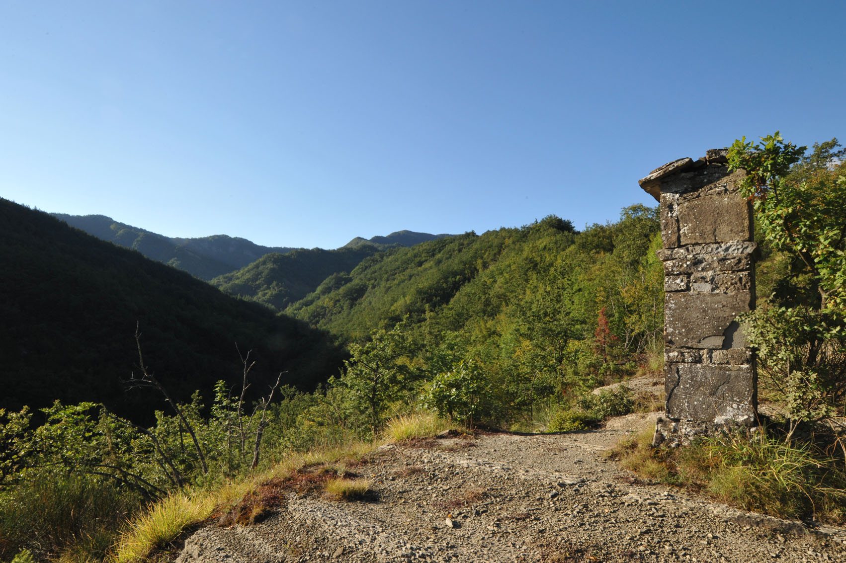 017h/017n – Il ponte sul Rio d’Olmo permette di collegare Pietrapazza con la Ciardella e l’Eremo Nuovo tramite una mulattiera realizzata sfruttando le stratificazioni dell’affilata cresta del Raggio del Finocchio, dove si può sostare dinanzi alla Maestà del Raggio, che voltando le spalle a Pietrapazza come in un selfie consente di abbracciare entrambe in un unico sguardo (18/10/11 - 12/08/16).