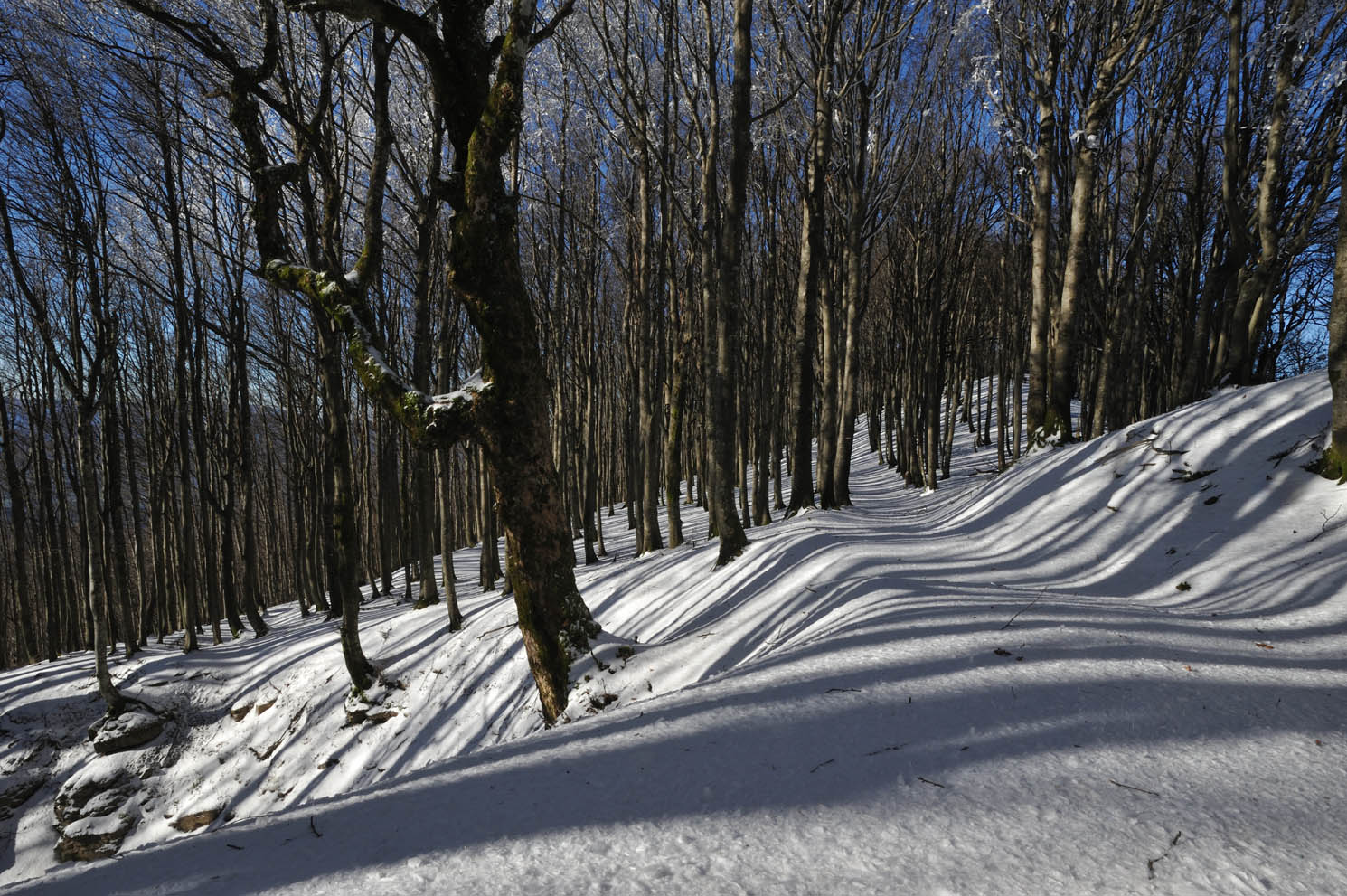 00q1 – 00q2 – Vedute della leggera pendice orientale del Monte Falco e della pista che rasenta la vetta del Falterona interessate dagli antichi itinerari di valico (21/12/11).