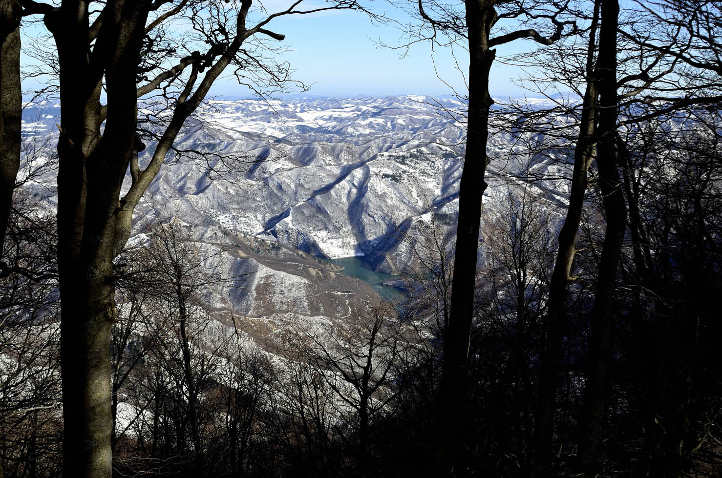00o1 – 00o2 – 00o3 – Da Poggio Giogarello, uno dei rari scorci dello Spartiacque dal lato toscano, con particolare della Riserva La Pietra e del Geosito omonimo; si nota PoggioScali (11/01/12).