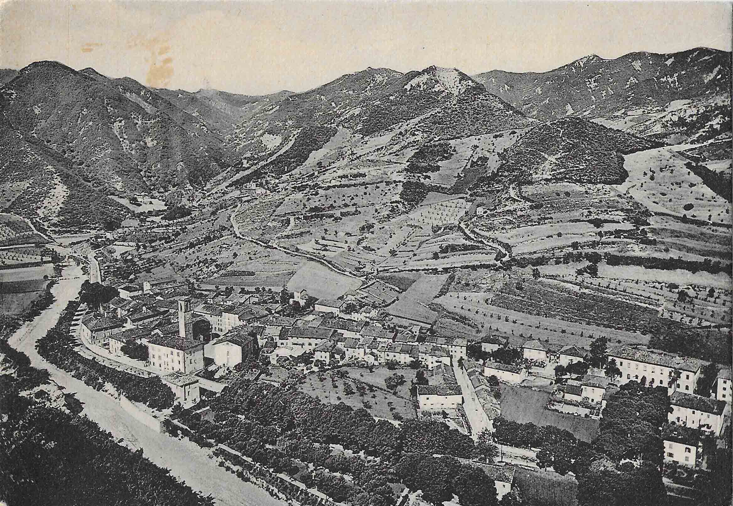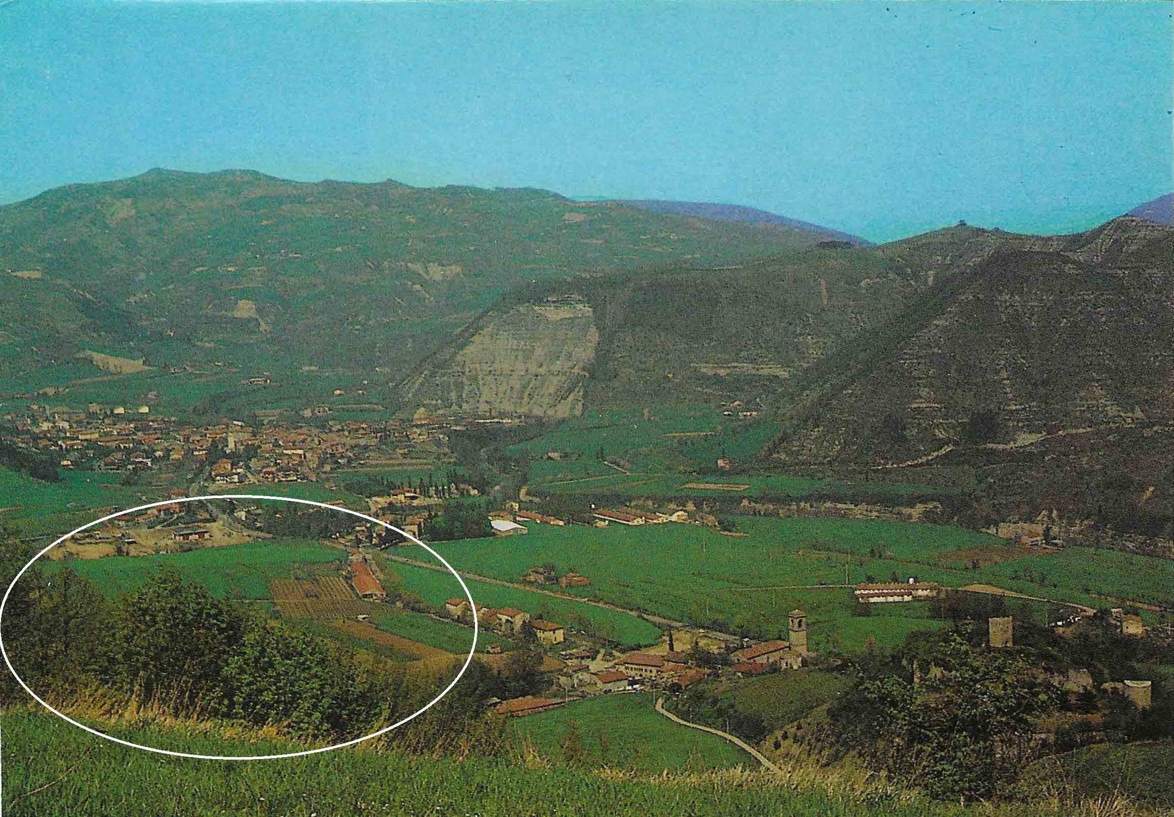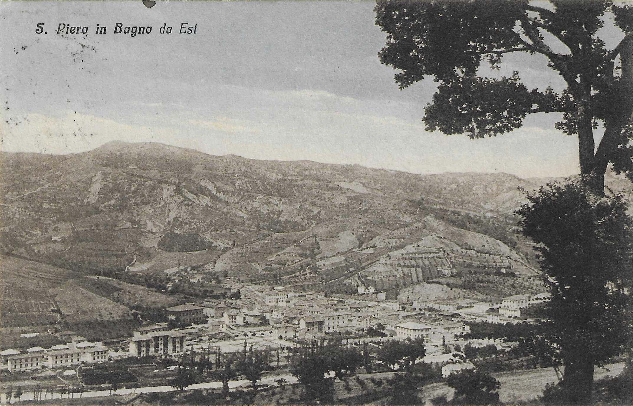 00f1b – Una veduta sullo stesso asse visivo della precedente panoramica, ma più ravvicinata: S. Sofia di Romagna (m. 257) Panorama nello sfondo dell’Appennino Tosco-Romagnolo, è riprodotta sulla cartolina Cartolux n. di serie 11; l’edificato della cittadina documentato dalla cartolina panoramica (una delle prime della serie, però non viaggiata - collezione personale) corrisponde all’estensione rilevata dalla mappa del 1937 dell’I.G.M., per cui si può datare l’epoca dello scatto fotografico agli Anni Trenta-Quaranta.
