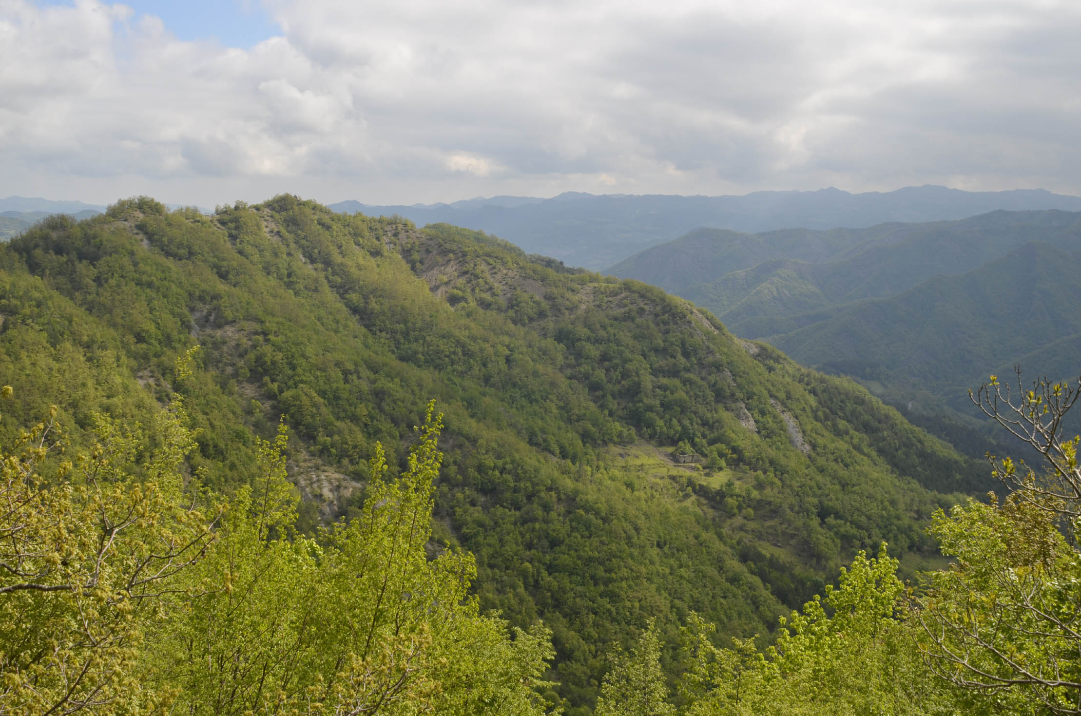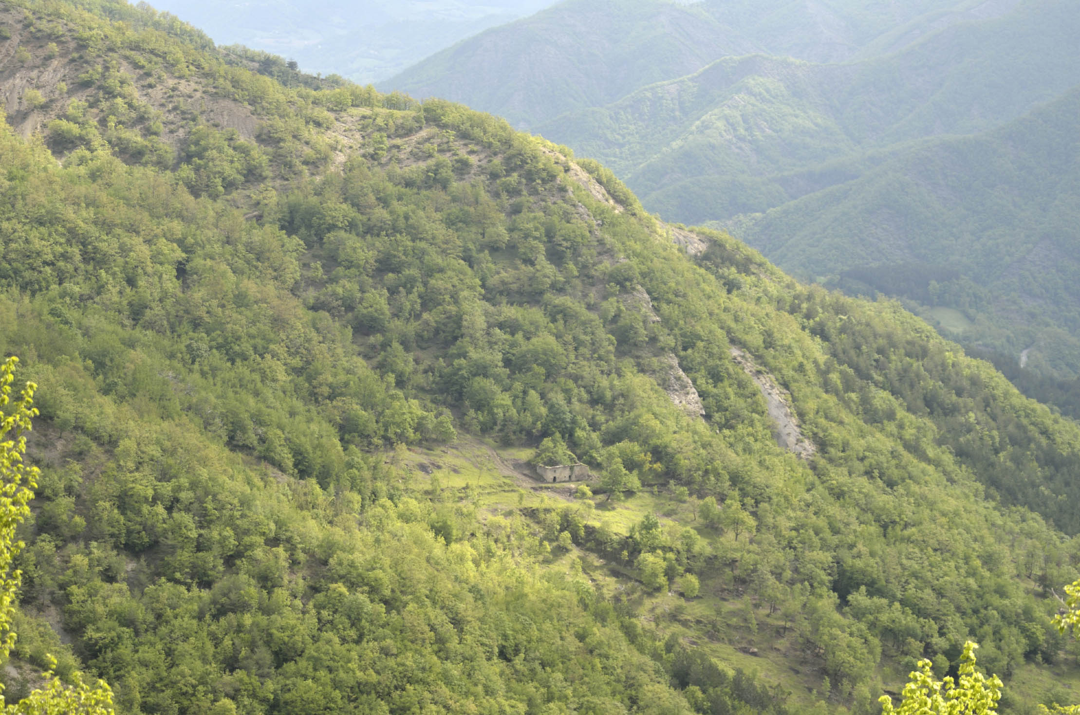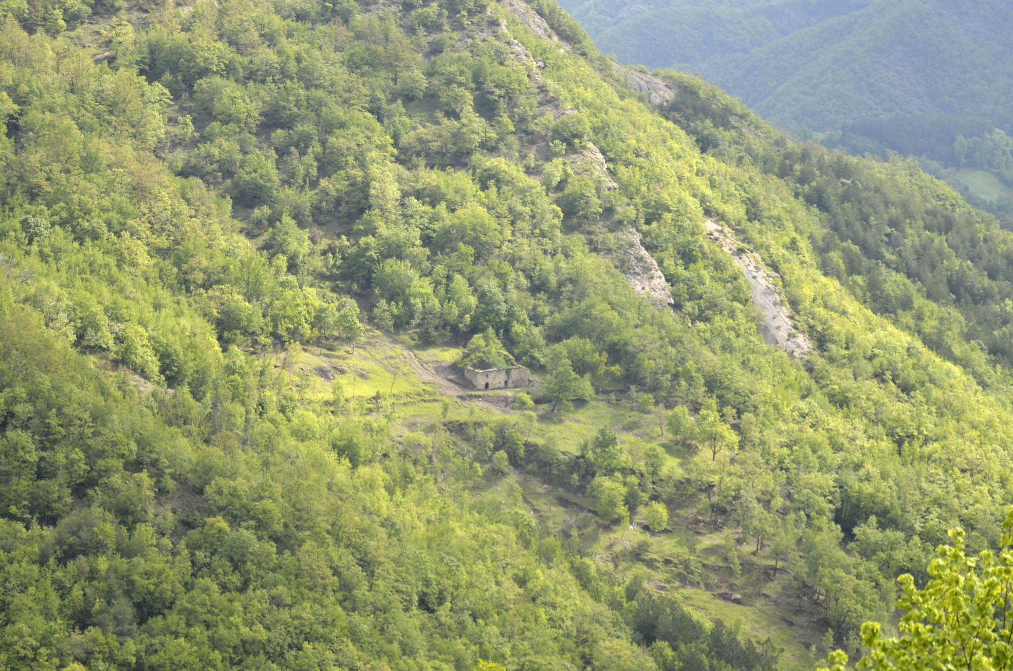 002q/002u – La valle del Fosso delle Fossatelle vista dalla strada di crinale Biserno-S. Paolo in Alpe (16/05/19).