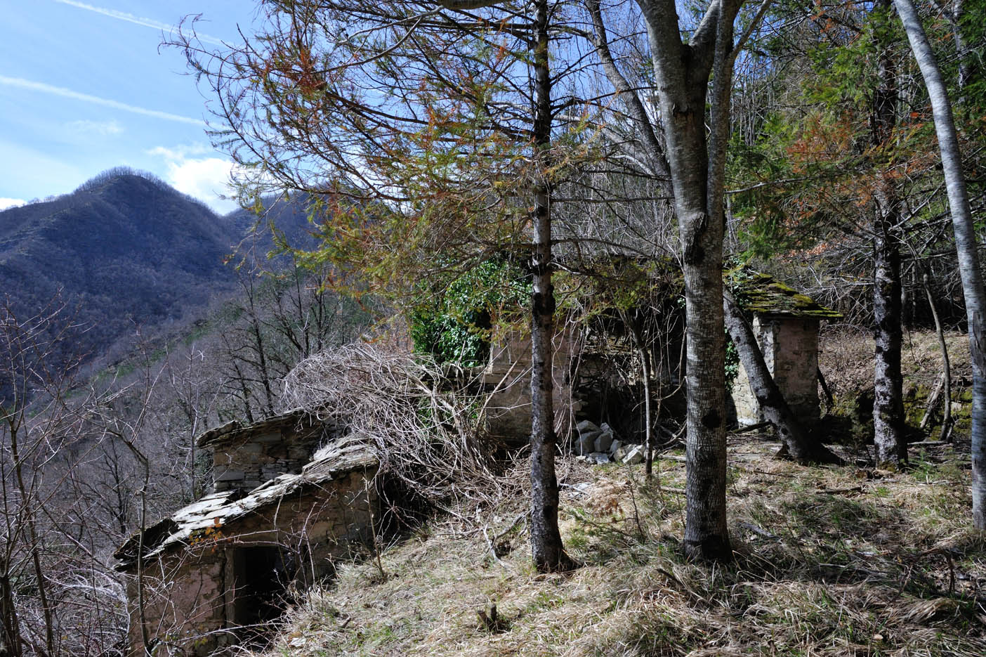 004e – 004f – Gli insediamenti della Valle di Capria: Capria di Sotto. Dopo mezzo secolo dall’abbandono sono ancora evidenti le difficoltà di rinaturalizzazione dei suoi coltivi (28/03/18 - 16/05/19).