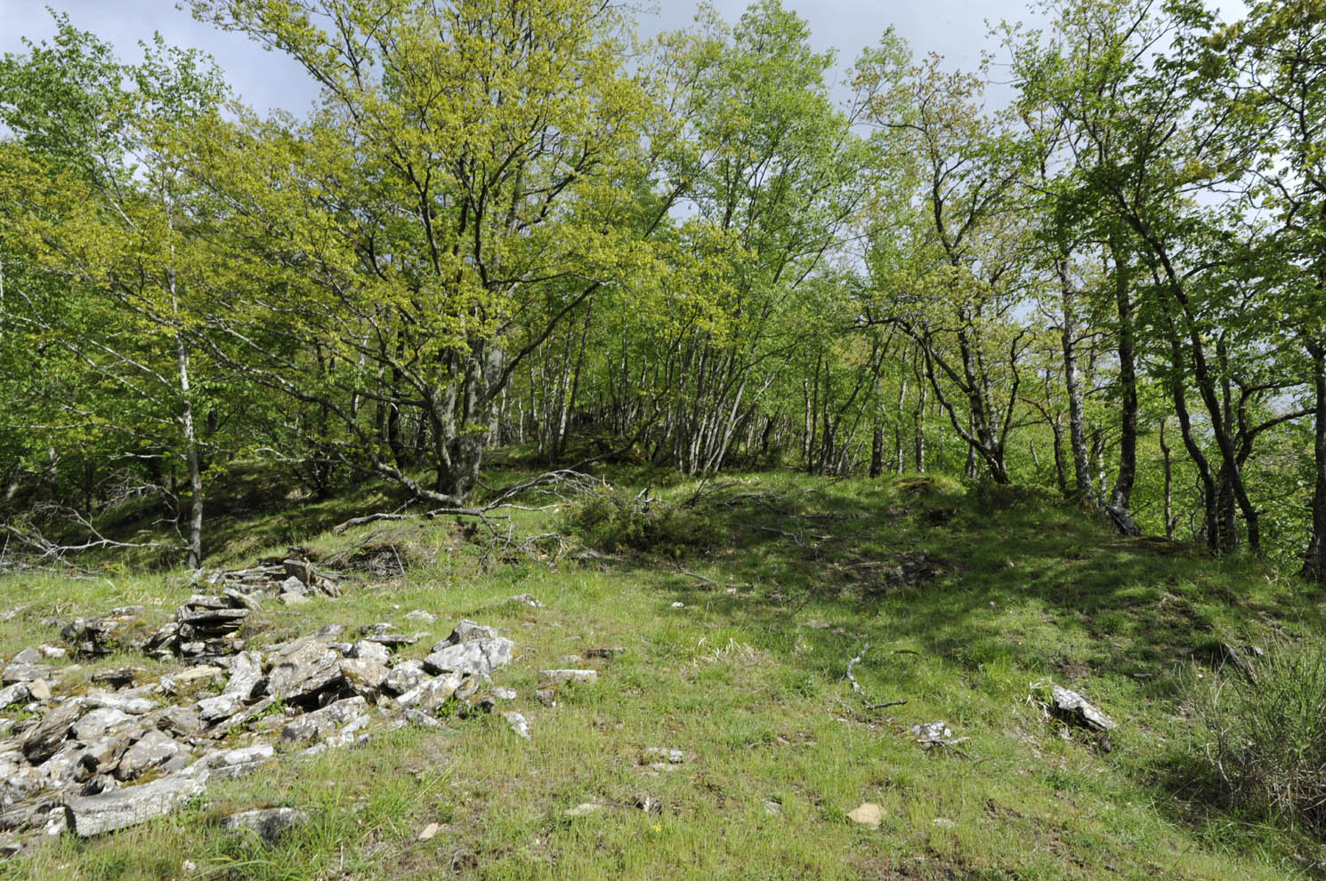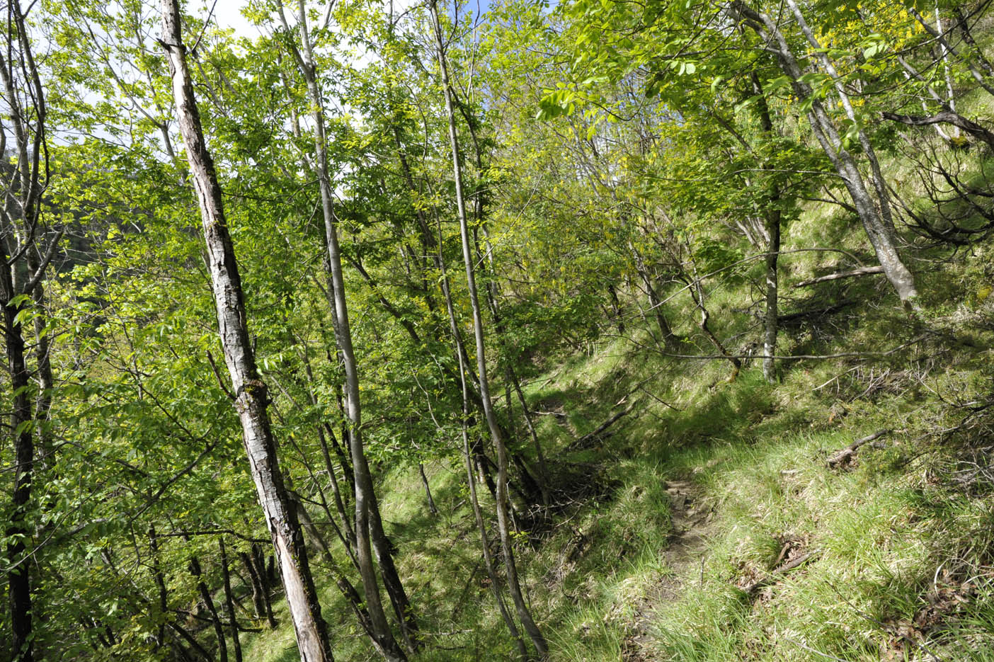 021/024 – Scarsi resti dell’antica mulattiera per Le Fossette si ritrovano a mezzacosta del versante meridionale della valle (16/05/19).
