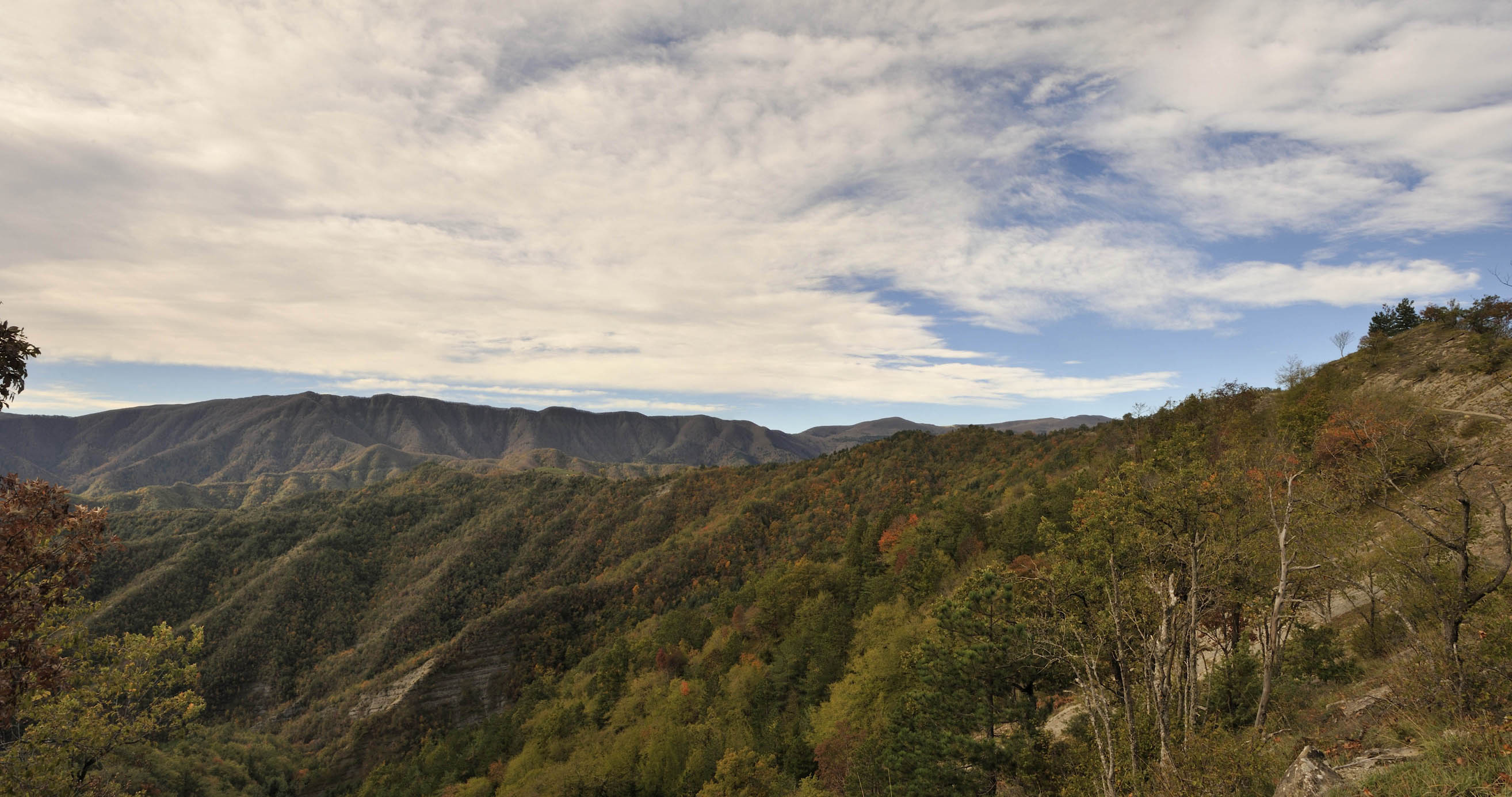 001c – 001d – Dal varco del Canale del Pentolino, sulla Giogana, e da Poggio Scali, vedute del contrafforte e della Valle del Rio Bacine (2/09/11 – 11/12/14).